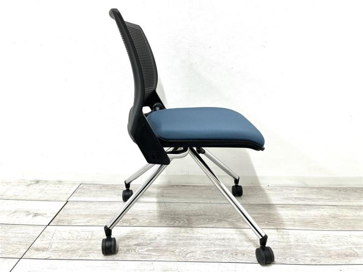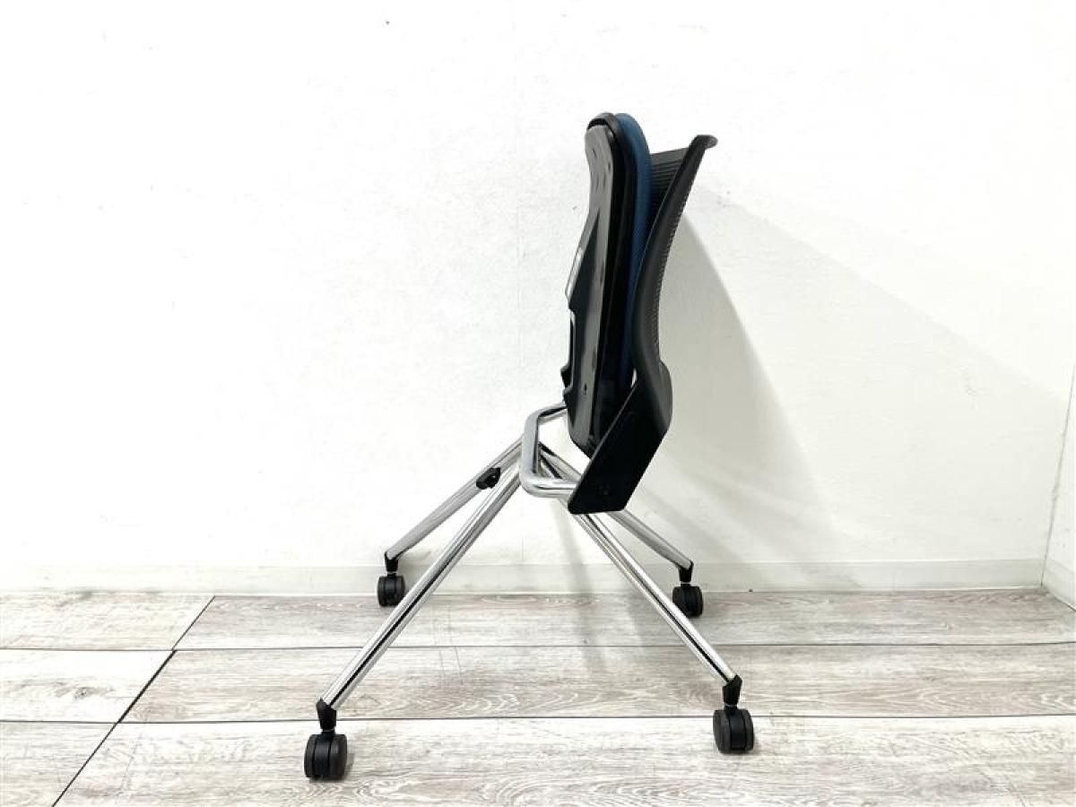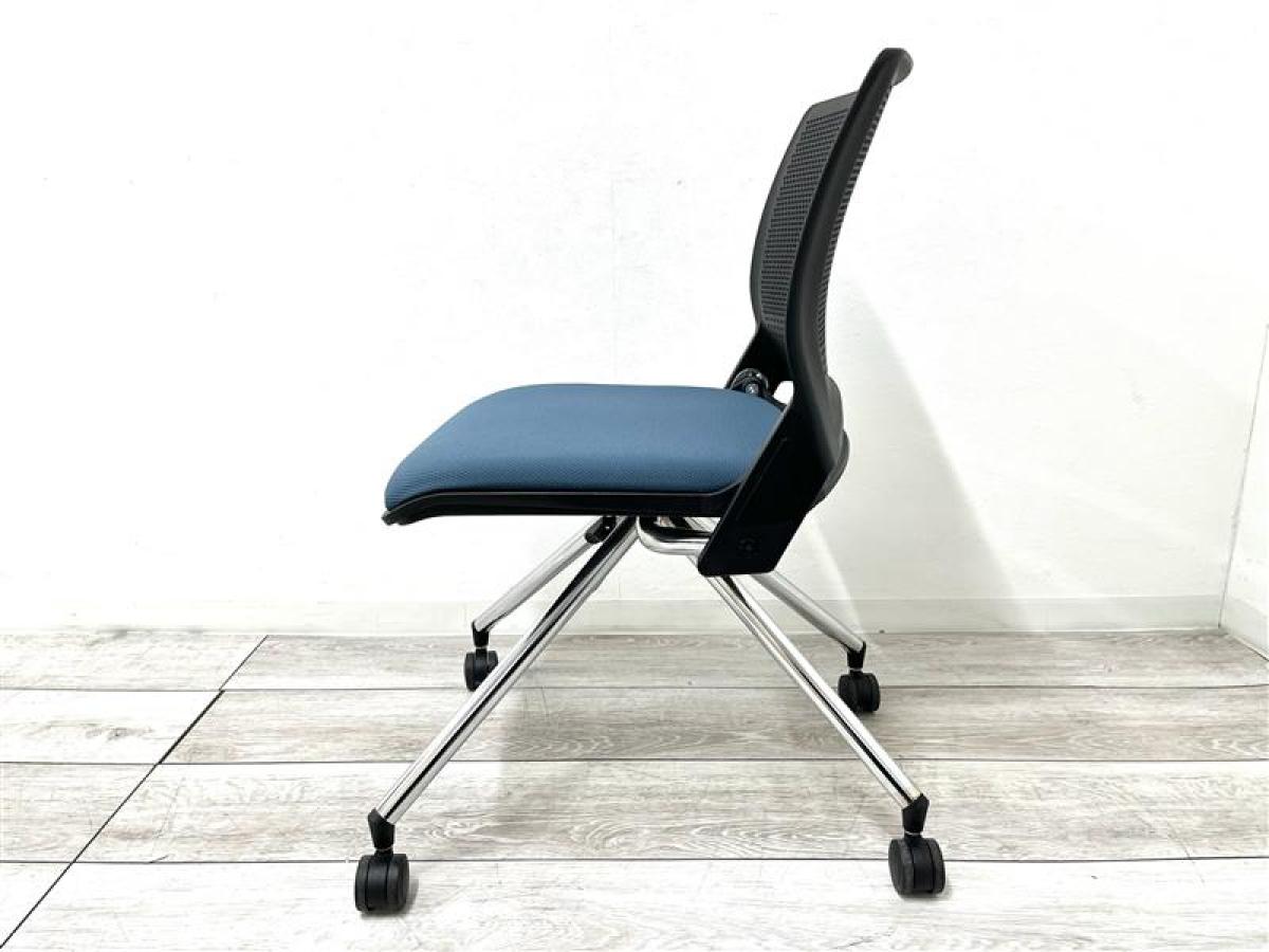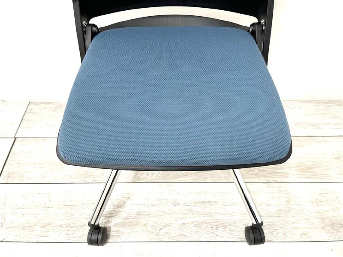 【定価約6万円】【座面折り畳み収納可能なネスティング】■オカムラ/クリール ■座面ミディアムブルー/背もたれブラック ■ネスティングチェア ■会議室/ミーティングルームなどにおすすめ!在庫がある店舗一覧
