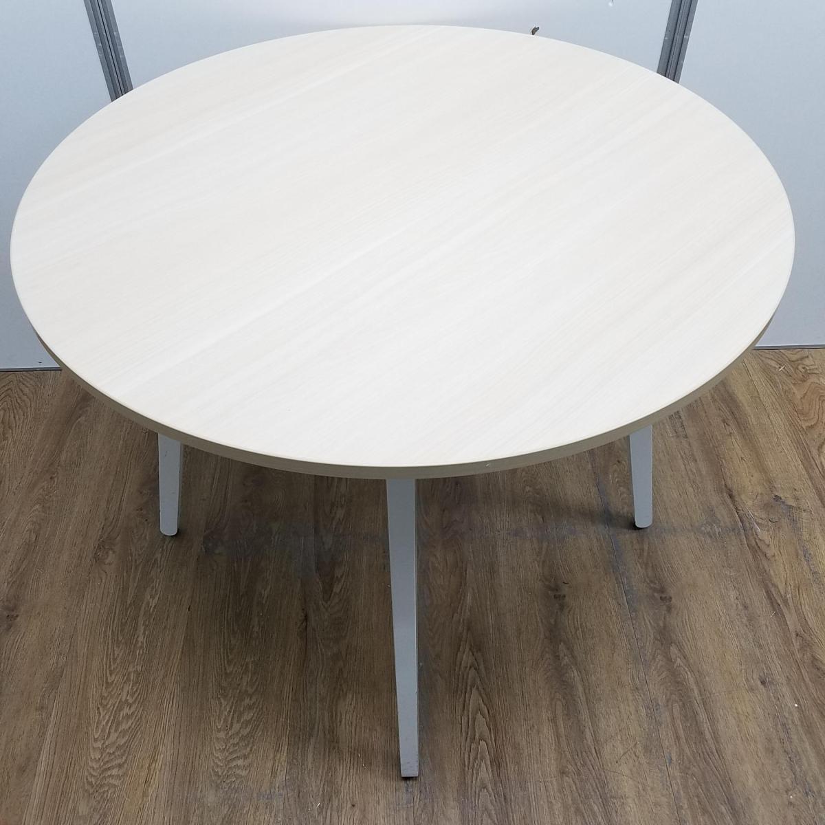 ウチダ製 レムナシリーズ 木目ナチュラル天板 4本脚ホワイト おしゃれな丸テーブル入荷! カフェ風のオフィスを作りたい方におすすめ! 人気の高いナチュラル×ホワイト仕様! 丸テーブル!!- 京都東寺店