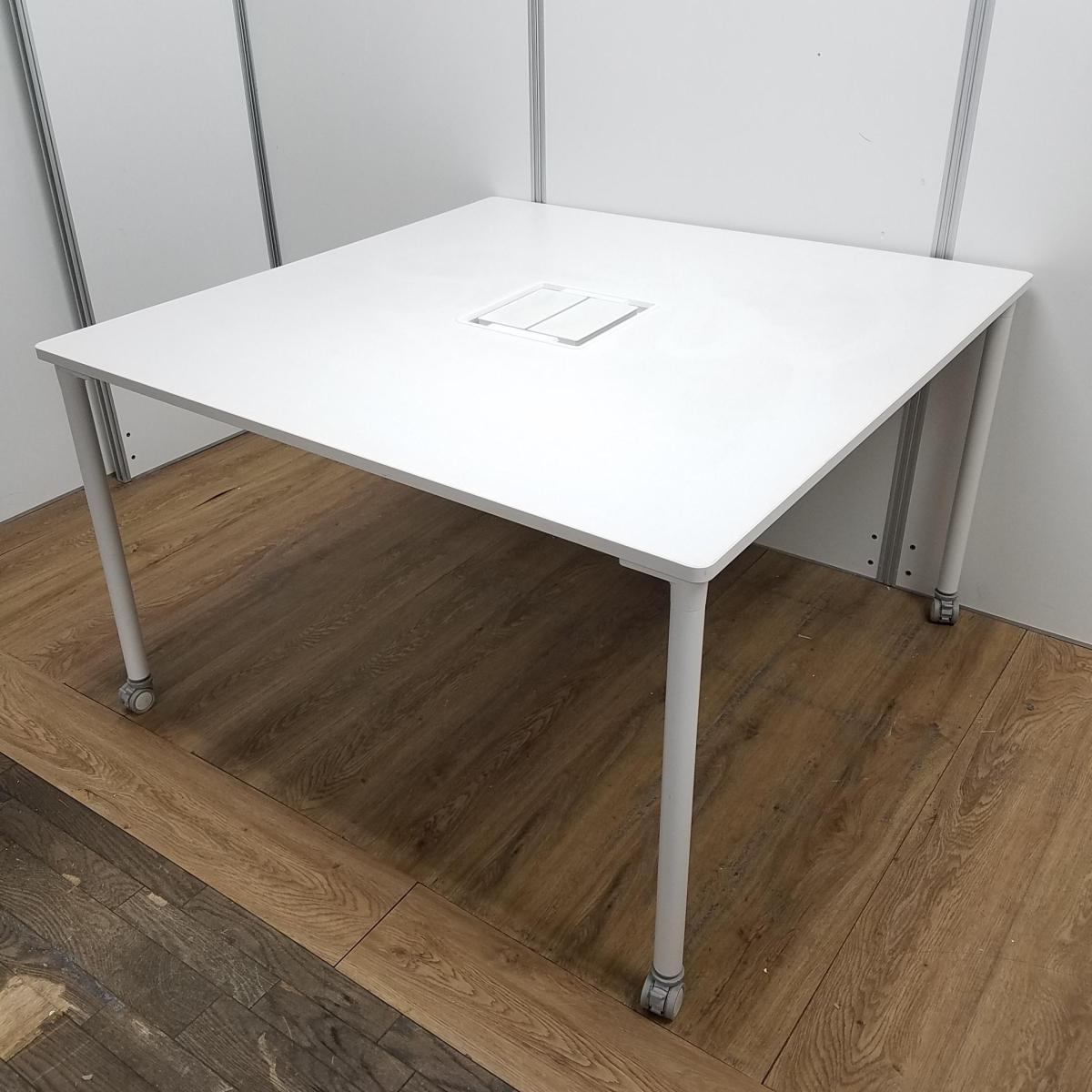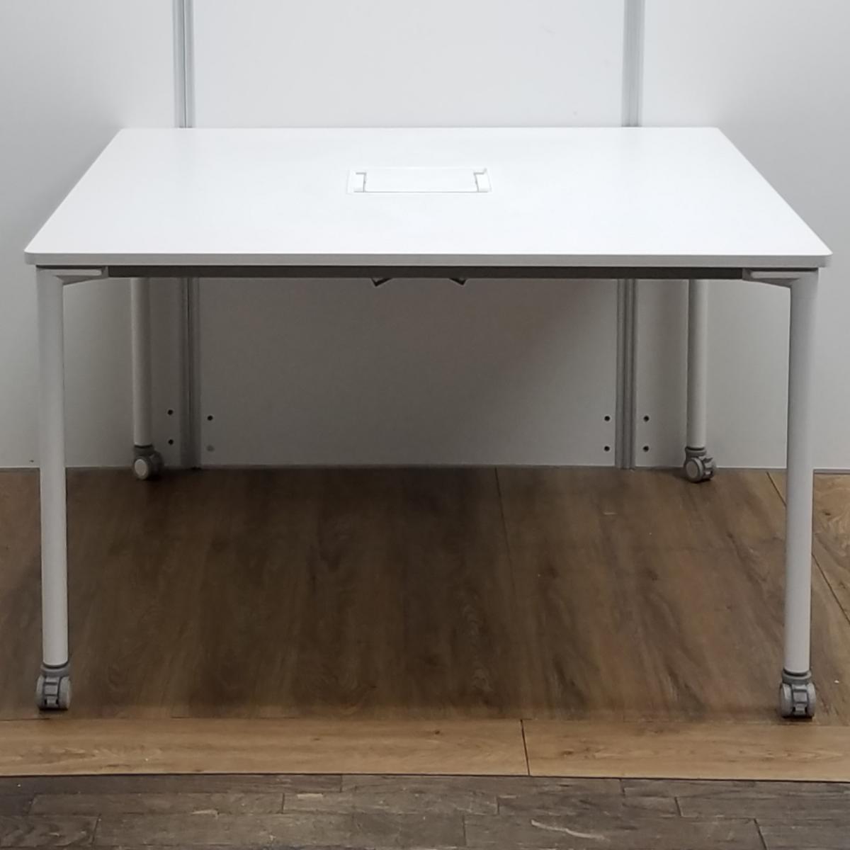 イトーキ製 アクティブフィールドシリーズ ホワイト キャスター付 配線口付 ワークテーブル 配線ダクト、キャスター付きで使い勝手抜群!人気のホワイトカラー! 角テーブル!!- 京都東寺店