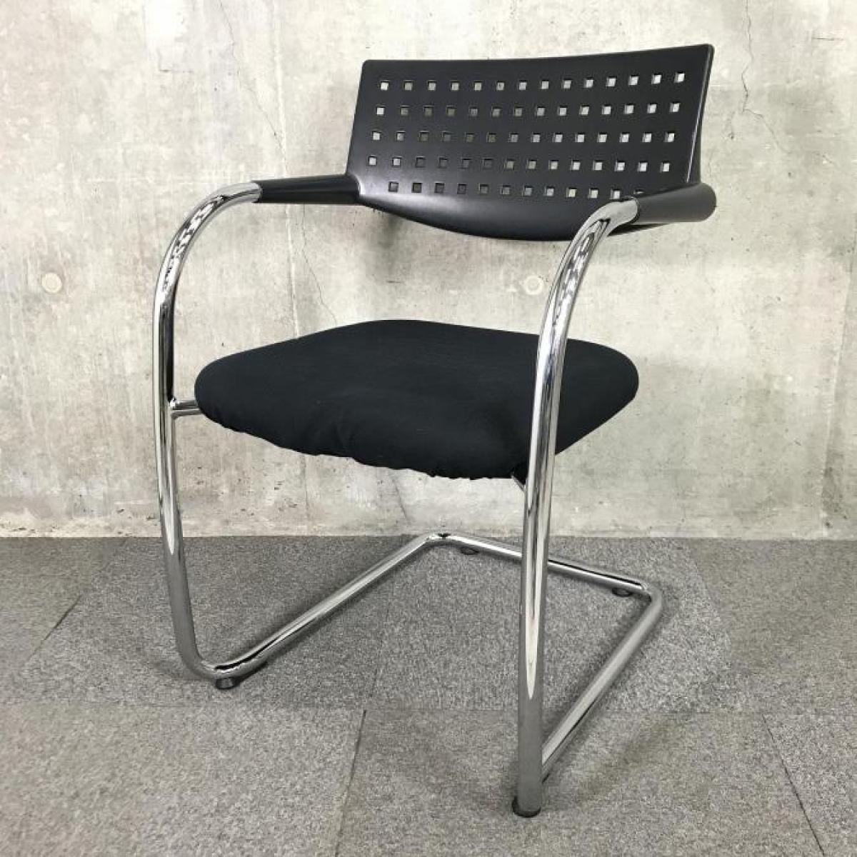 【座り心地&デザイン性に富んだ海外メーカー製チェア!】 ■ヴィトラ(Vitra)製 ビザビチェア 肘付ミーティングチェア スタッキングチェア ■ブラック ■背面樹脂メッシュ ■固定肘【A01000050】【IB】在庫がある店舗一覧