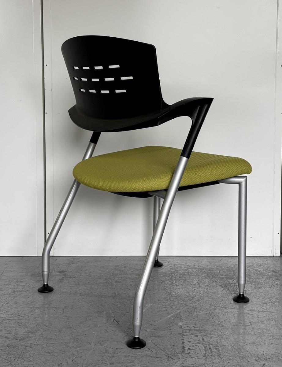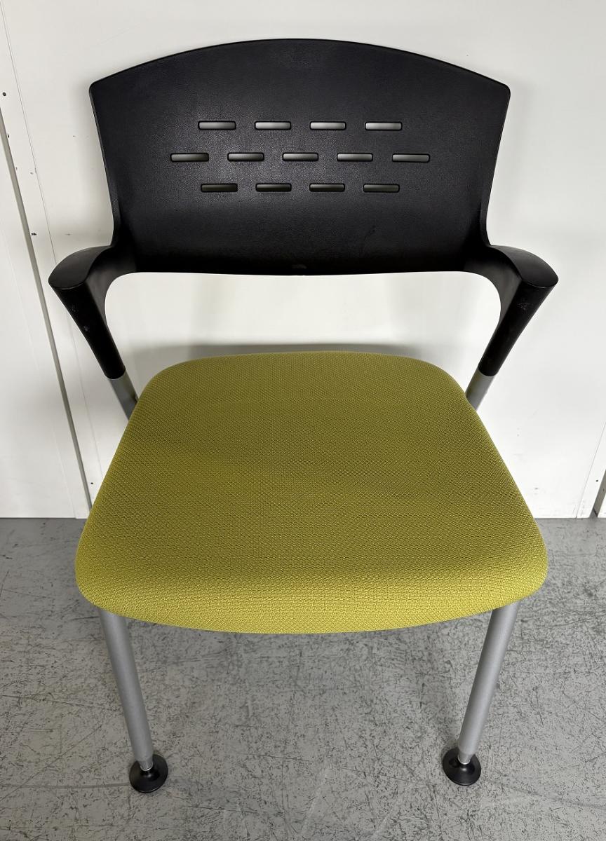 【すっきりしたデザインで人気!使わないときは重ねて収納できる! 】■イトーキ(ITOKI) カクタス スタッキングチェア ミーティングチェア ■肘付き ■背パッド無し キャスター無し ■座面グリーン × 背面ブラック- なんば日本橋店