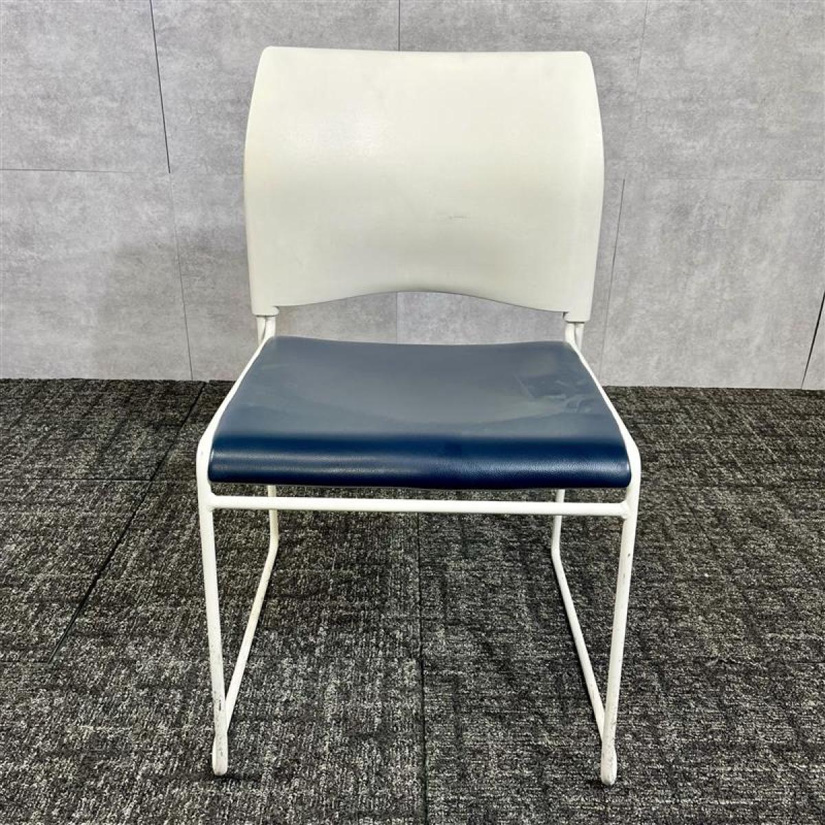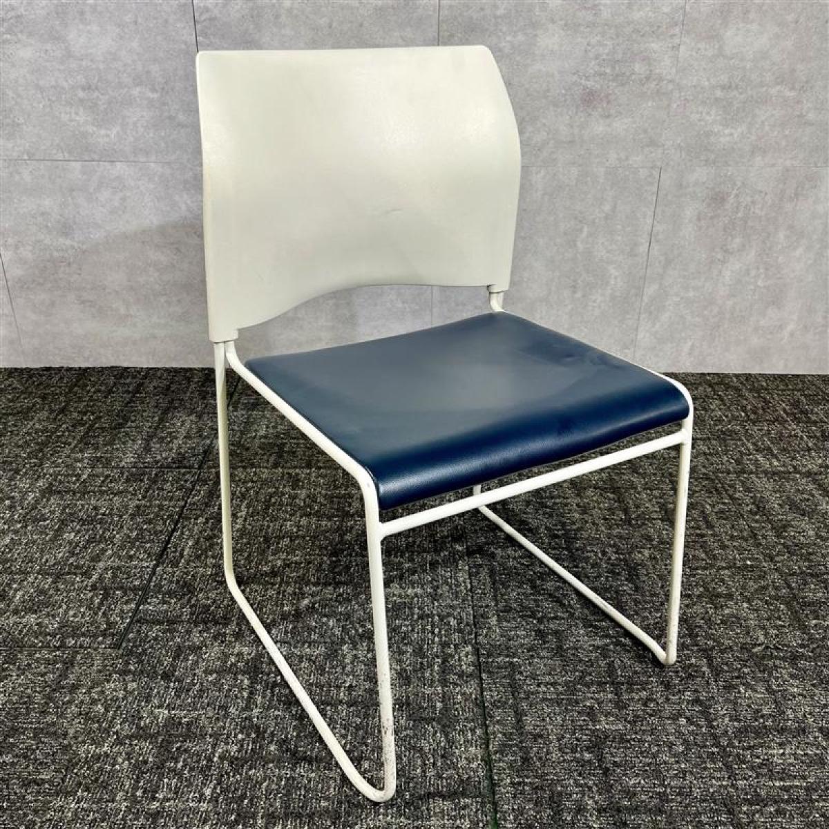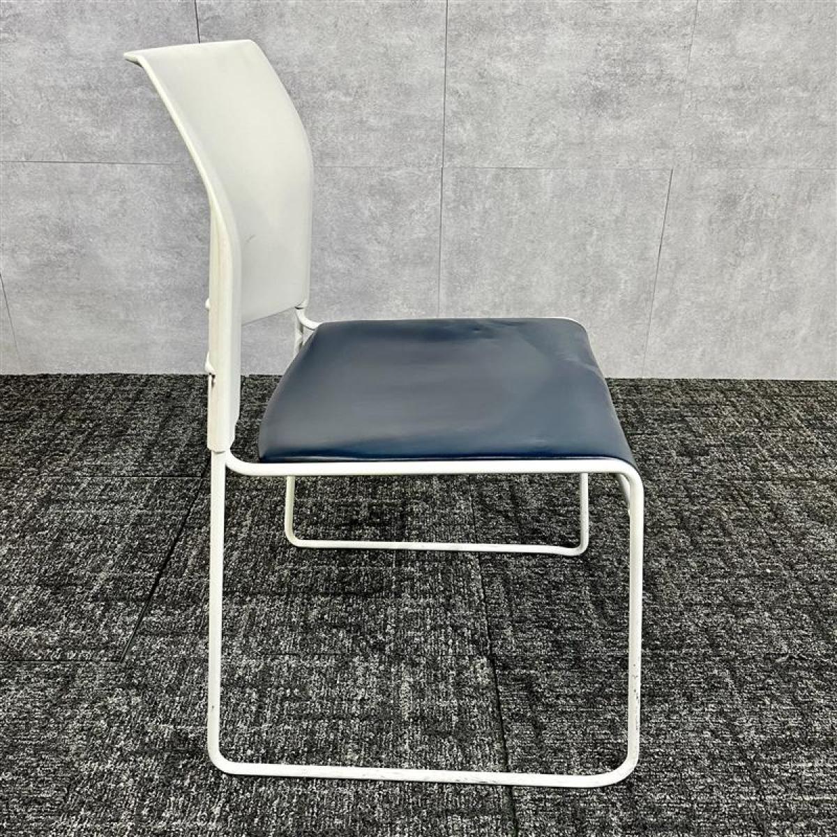 【博】中央可鍛工業製/スタッキングチェア/レザー/ネイビー/ループ脚/オフィスバスターズ/中古/九州最大級- 福岡博多店