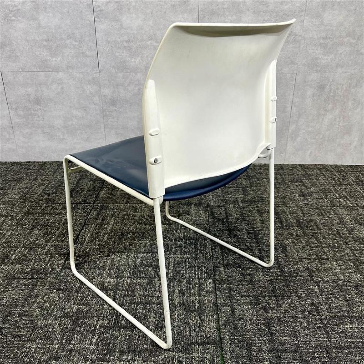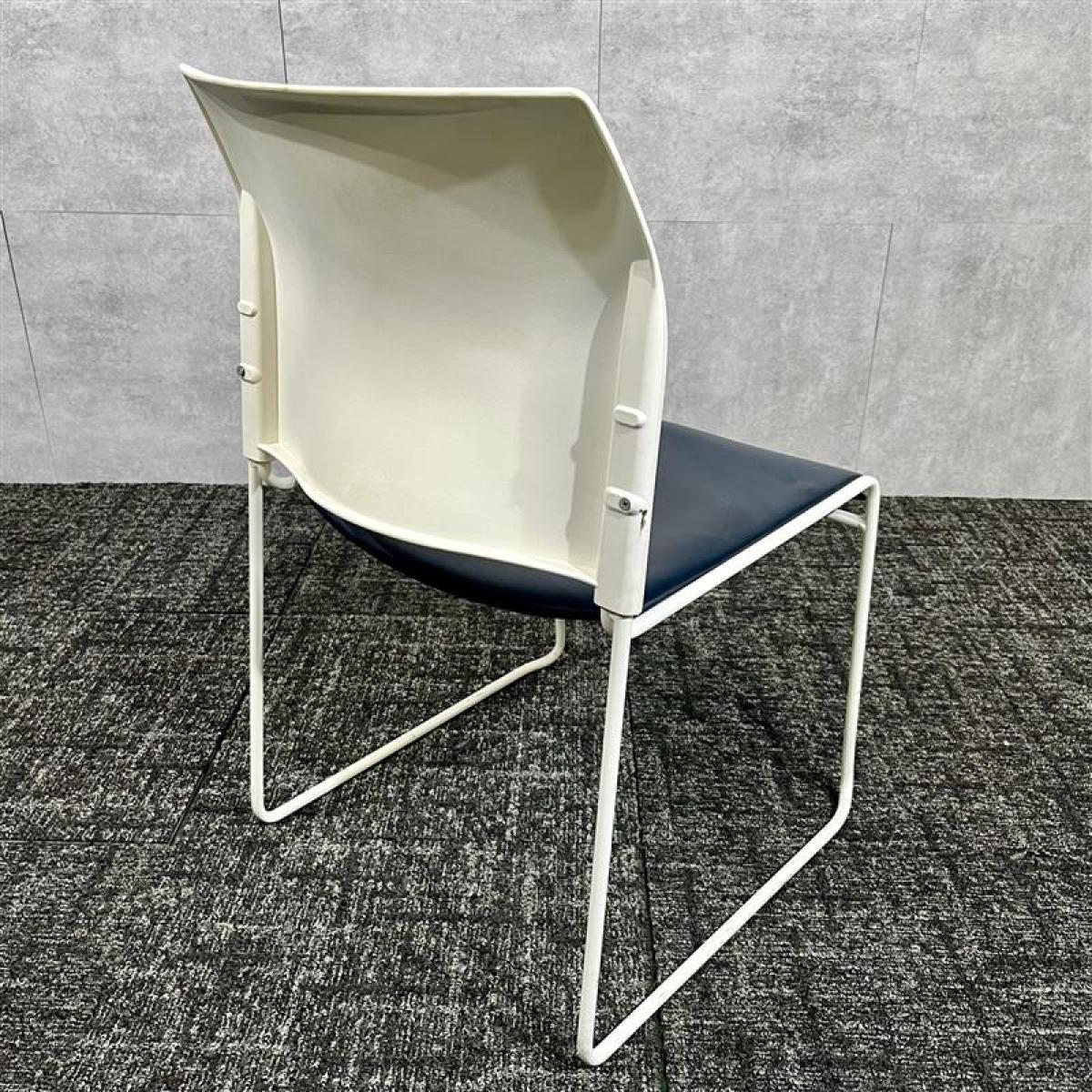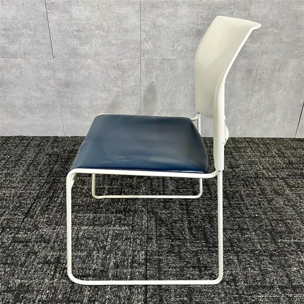 【博】中央可鍛工業製/スタッキングチェア/レザー/ネイビー/ループ脚/オフィスバスターズ/中古/九州最大級- 福岡博多店