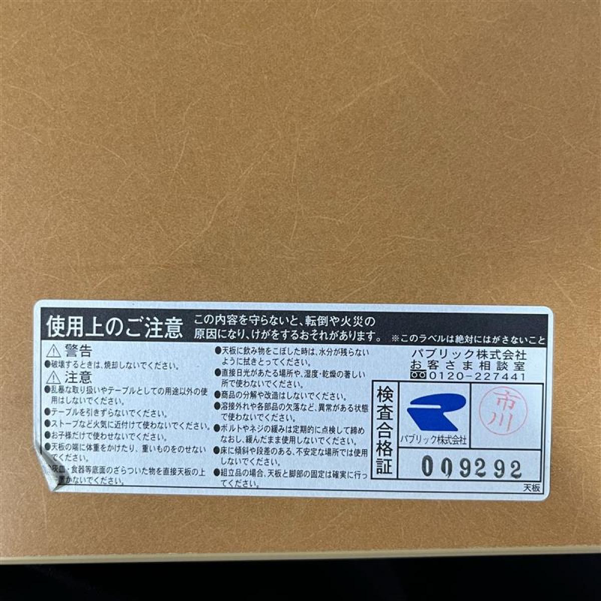 - 一部不具合あり天板歪み、アジャスター無し、キャスター使用不可ようなそのテーブルの本来の効用を果たすための機能以外の一部が使用不可な状態。(例、キャスターロッ ク機能使用不可、棚板無し等がある。)
