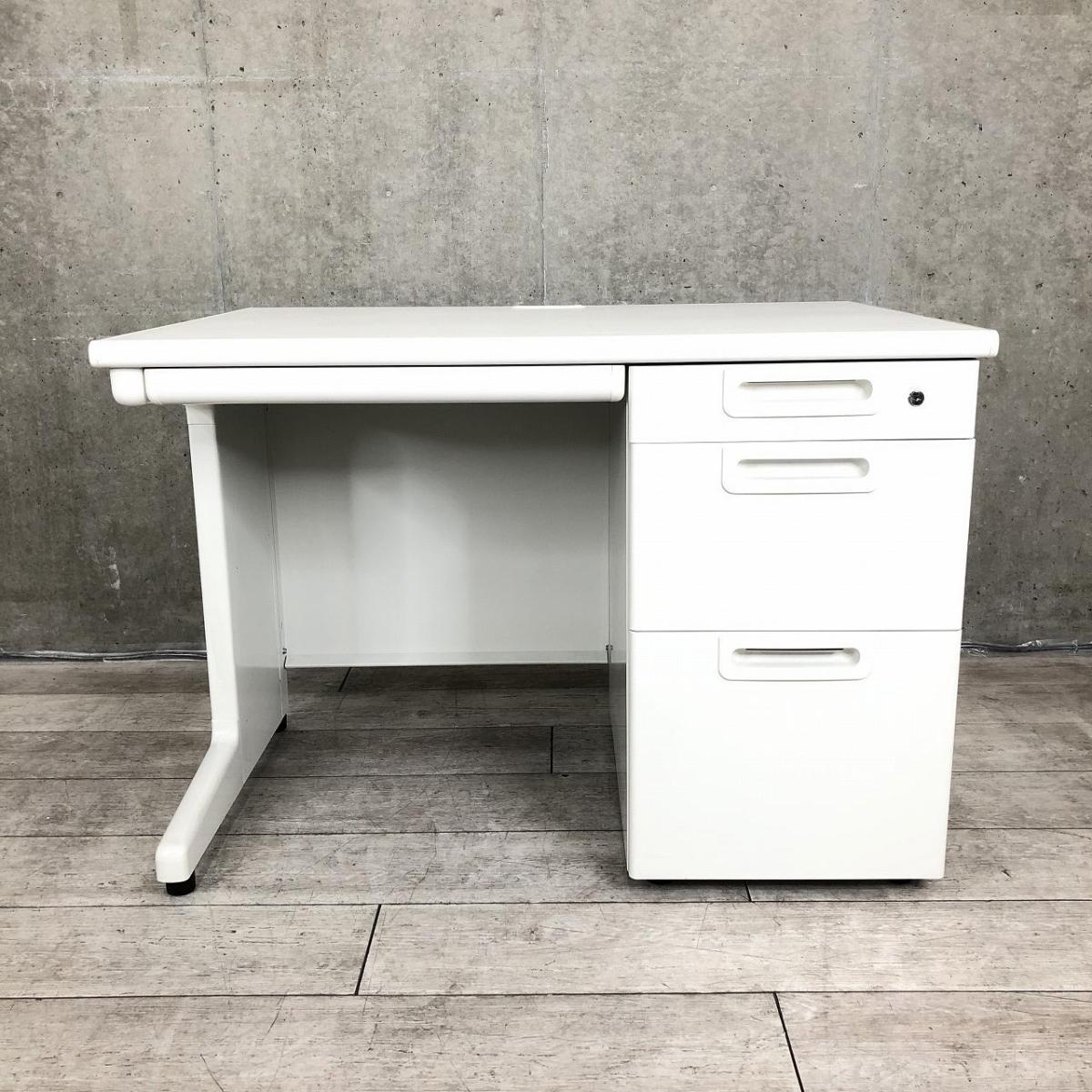 【コンパクトサイズ!収納も充実で使いやすい!】■プラス(PLUS) LAシリーズ 片袖机 ■W1000㎜×D700㎜ ■ホワイト ■シリンダー錠- 仙台店