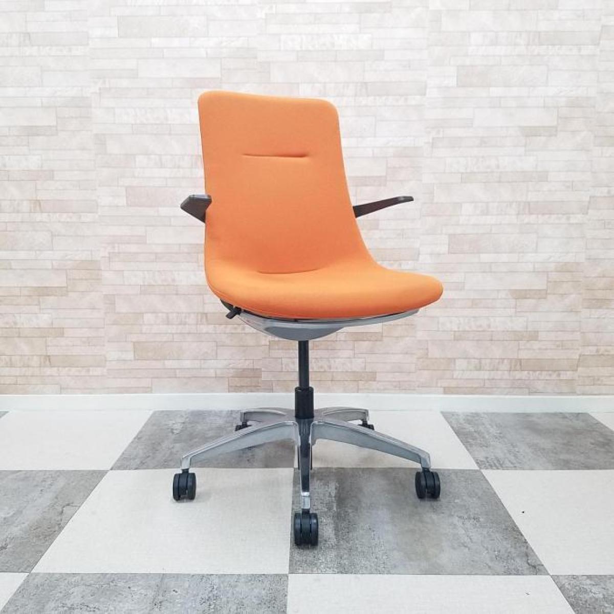 【背と座をなめらかに一体化させた独特のフォルム!】■イトーキ製 モーブチェア(MOVU) ミーティングチェア ■アンバーオレンジ シェル色:ブラウン- 大阪・堺店
