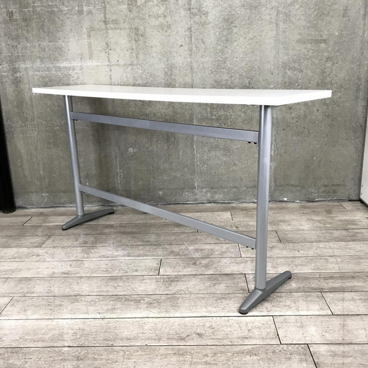 【オフィスの雰囲気ががらりと変わる!高さ950mmのハイテーブル!!】■パブリック製 ミーティングテーブル 角テーブル ハイテーブル W1800×D450×H950mm ■天板:ホワイト T字脚:シルバー【入替セールにつき30%OFF!】- つくば店
