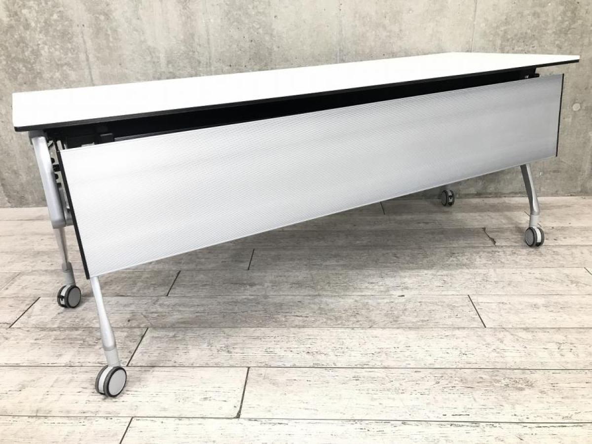 【折りたたみ収納が秀逸!奥行きゆったりサイドスタックテーブル!】■オカムラ(okamura)製 インターアクトNT サイドスタックテーブル 幅1800mm ■幕板パネル付 ■ホワイト- 神戸・三宮店