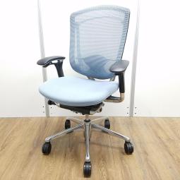【K9】【商品入替のため、残り7脚限り】【座面に使用感の汚れあり】オカムラ製 コンテッサシリーズ ライトブルー 背面メッシュ ランバーサポート付 可動肘 世界で認められた革新的タスクチェア! 人間工学に基づいた快適な座り心地を実現! 肘付きハイバックチェア!!