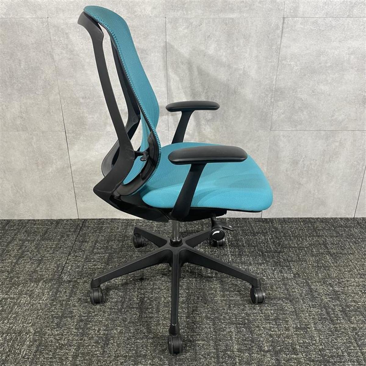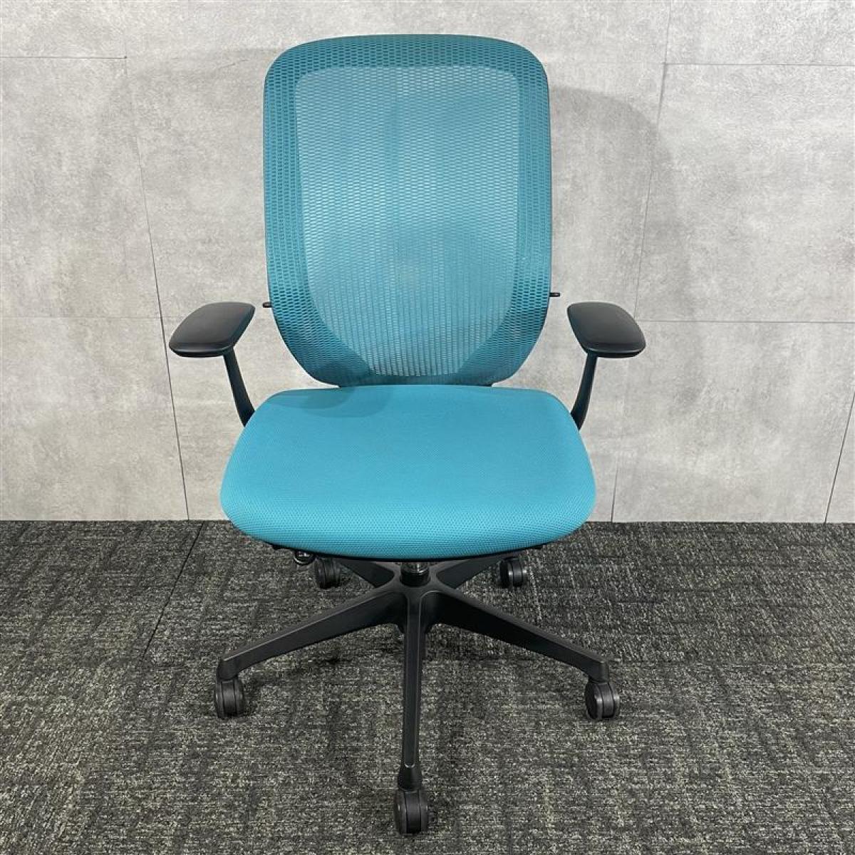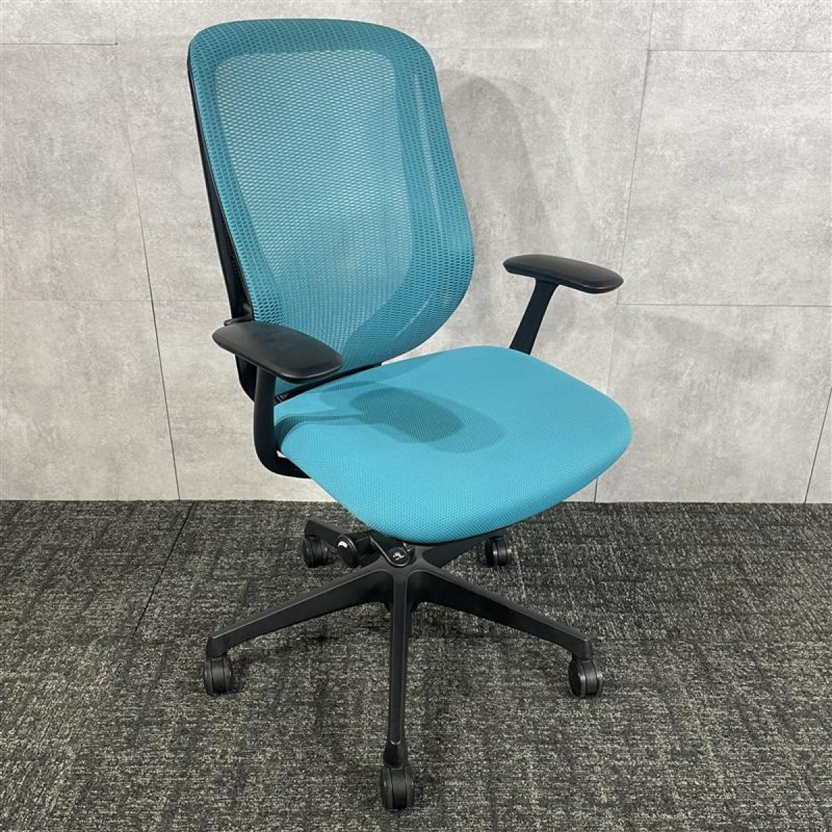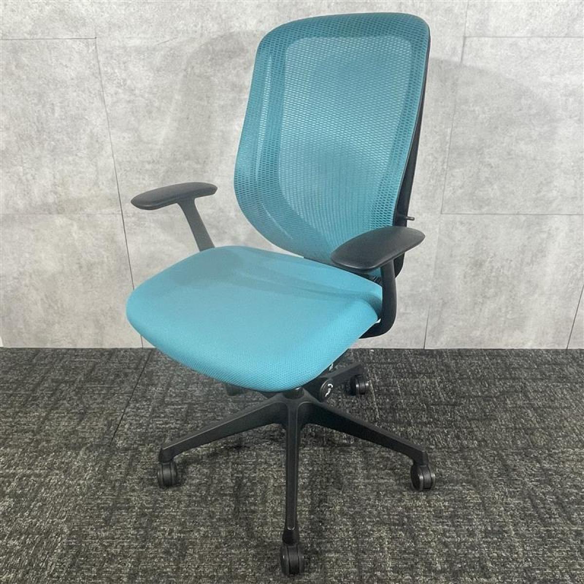 《現物写真だから安心!》オカムラ製の人気オフィスチェア【シルフィーメッシュ/可動肘/ヘッドレスト付き/ブルーグリーン】が先着1名様ご案内可能です!