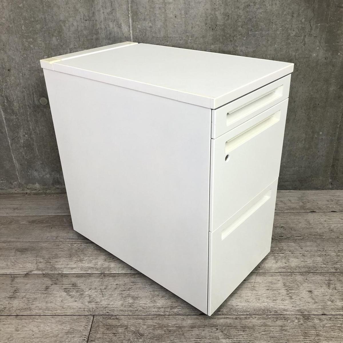 【収納と作業スペースを同時に確保!人気シリーズの脇机!】■オカムラ(okamura)製 アドバンス (ADVANCE) 3段脇机 高さ 720mm ■シリンダー錠 ■ホワイト 【弊社使用欄:A01041635】