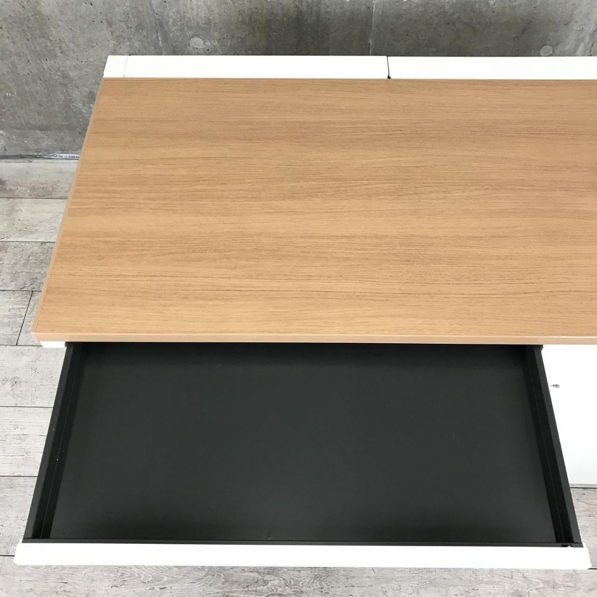 色は本体はネオホワイト、天板が濃い目の木目柄ナチュラル系カラー!