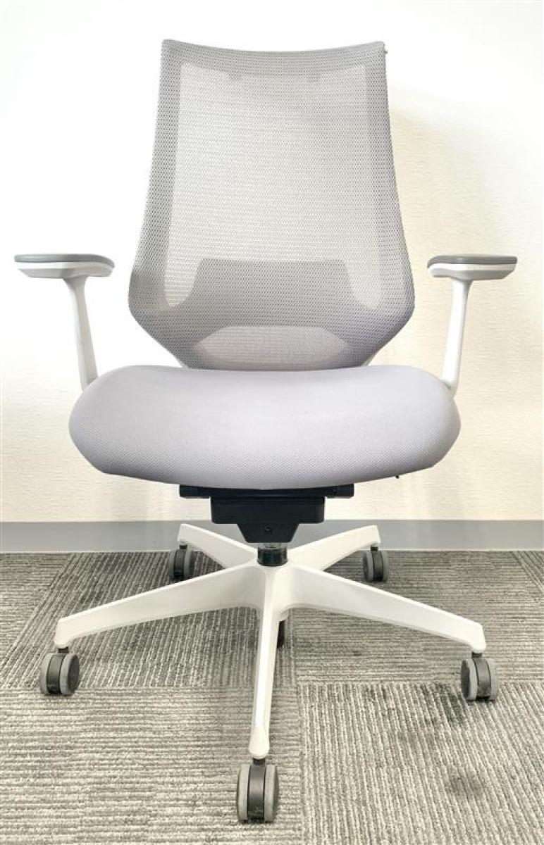 コクヨ デュオラチェア メッシュタイプ 可動肘 ソフトグレー×ホワイトフレーム お洒落で使い勝手の良い仕様とカラーリングで人気