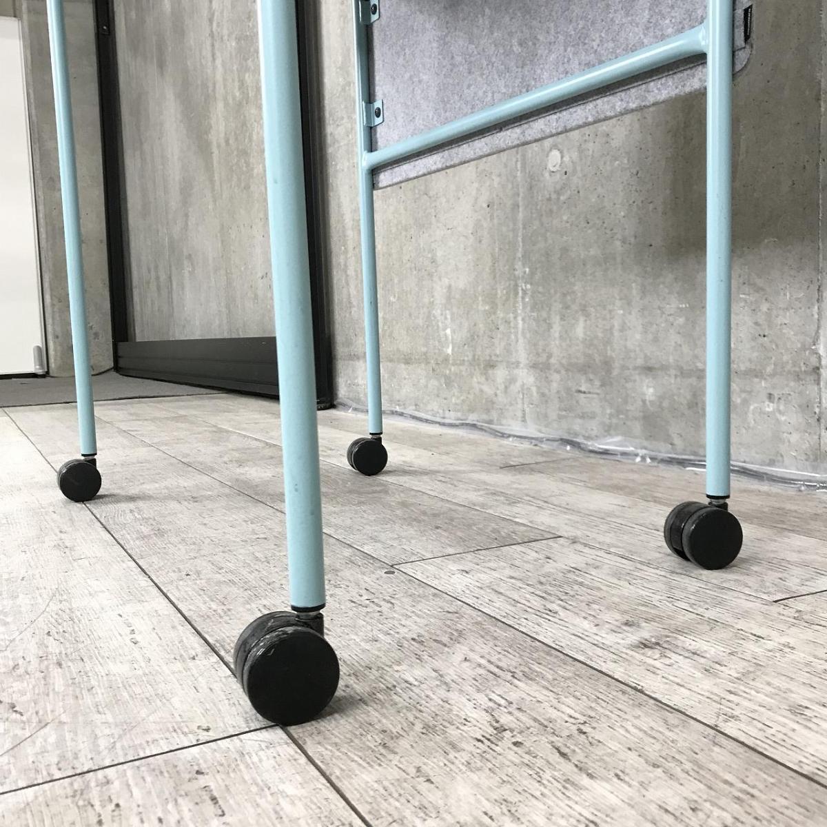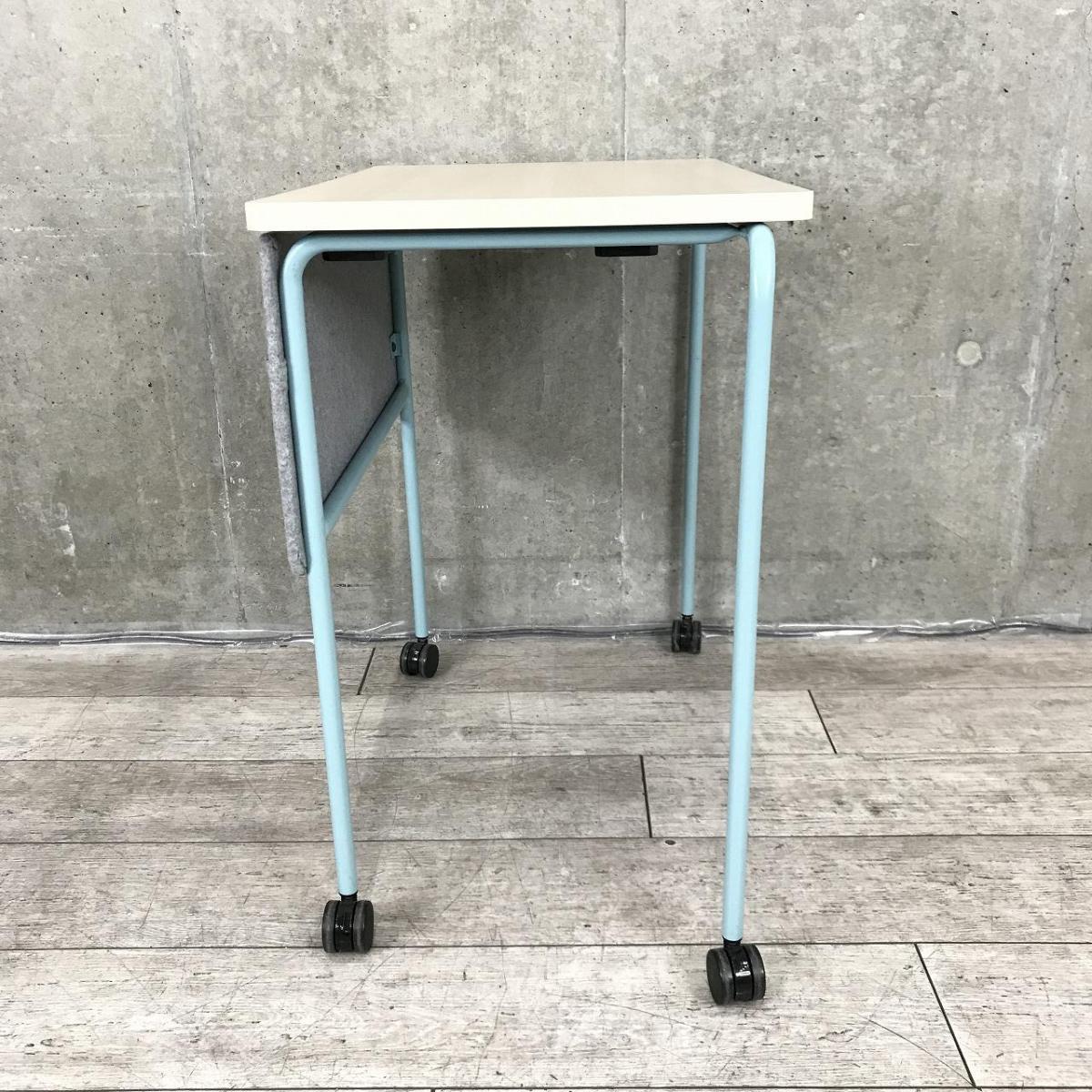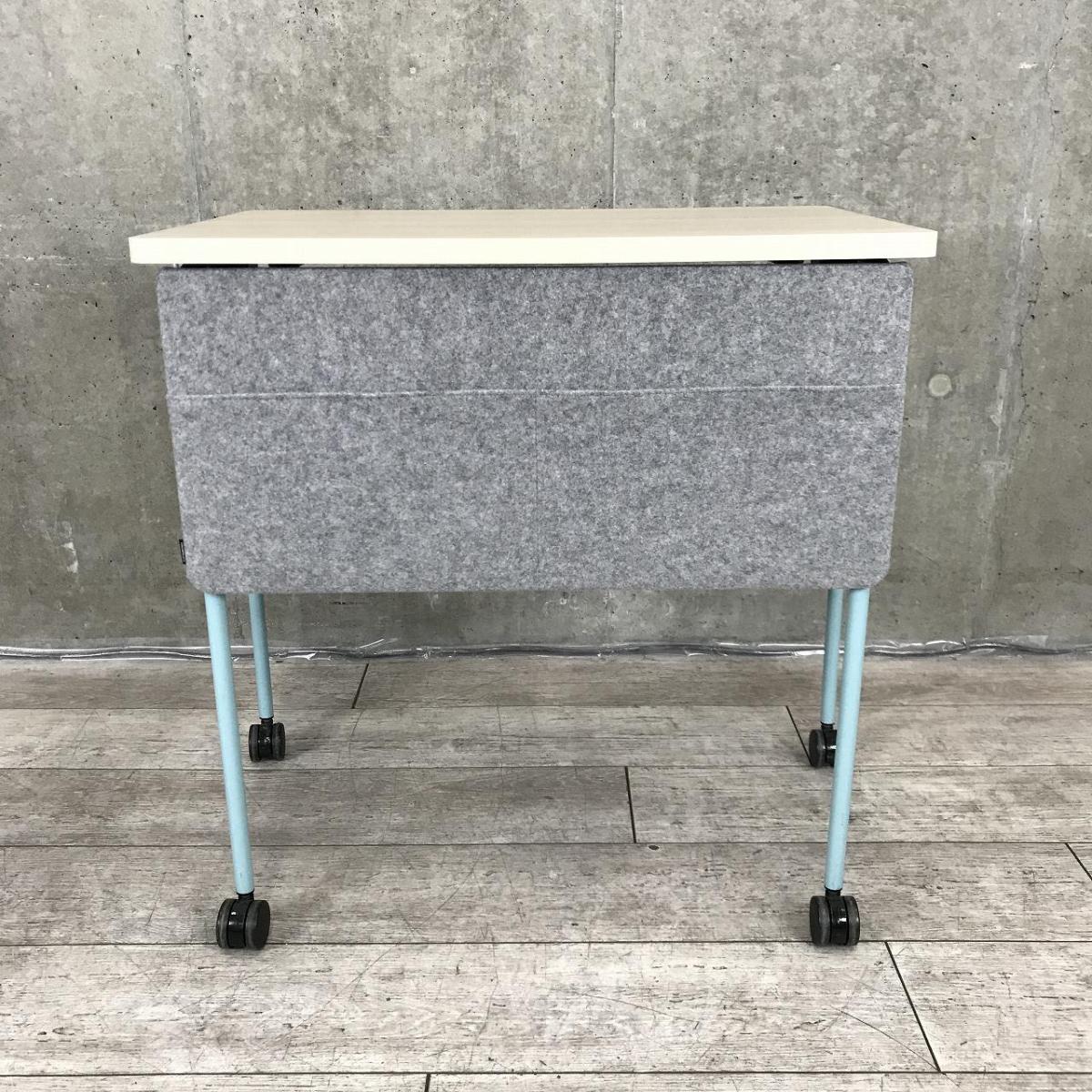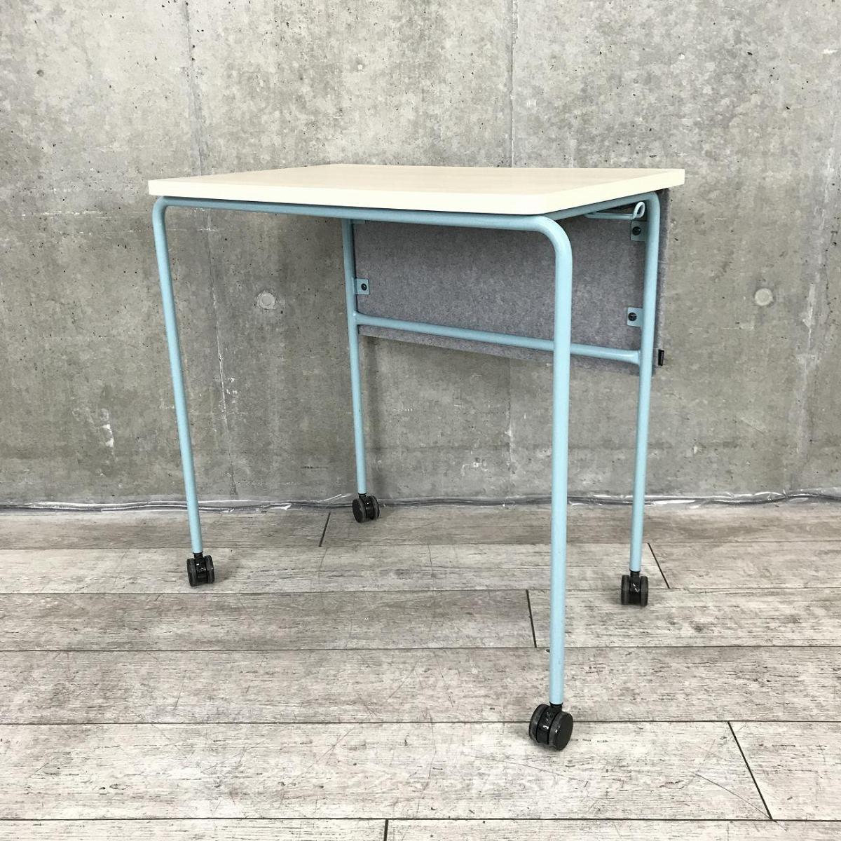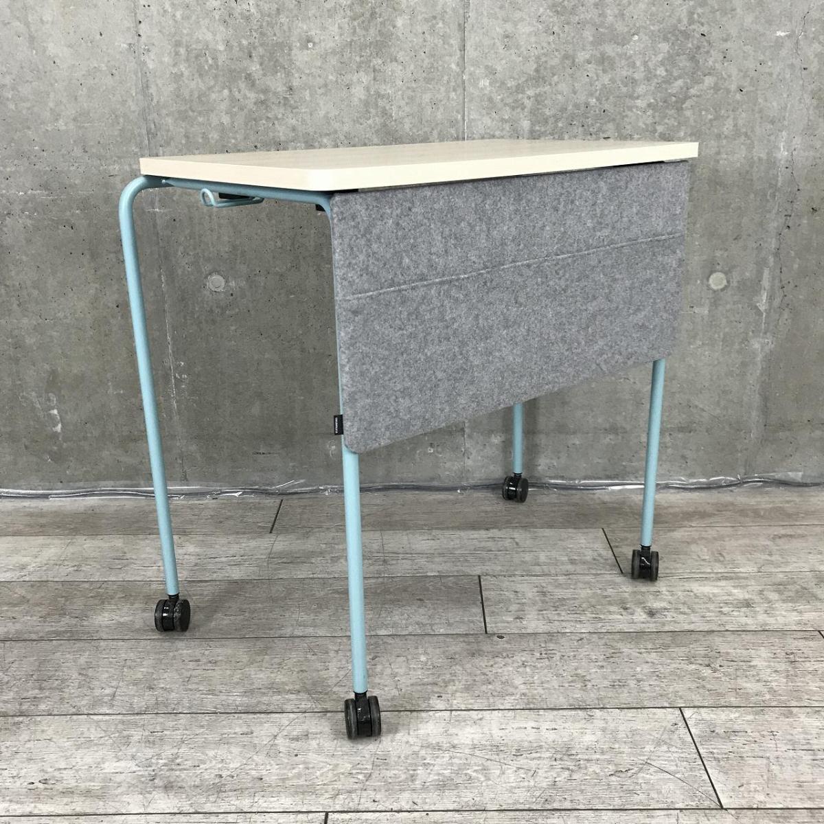 【キャスター付でフレキシブルに使えます!4台まで積み重ねも可能!】■オカムラ(okamura)製 スプリントテーブル ■木目ナチュラル×ブルー脚 ■幕板付 ■キャスター付【弊社使用欄:A01009341】【KN】- 在庫数