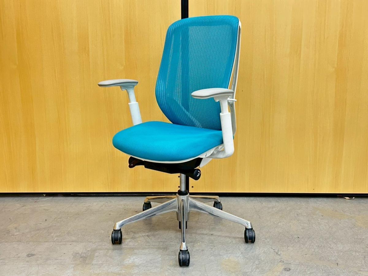 【新品ヘッドレスト交換済み】オカムラ/シルフィー/ブルー/可動肘