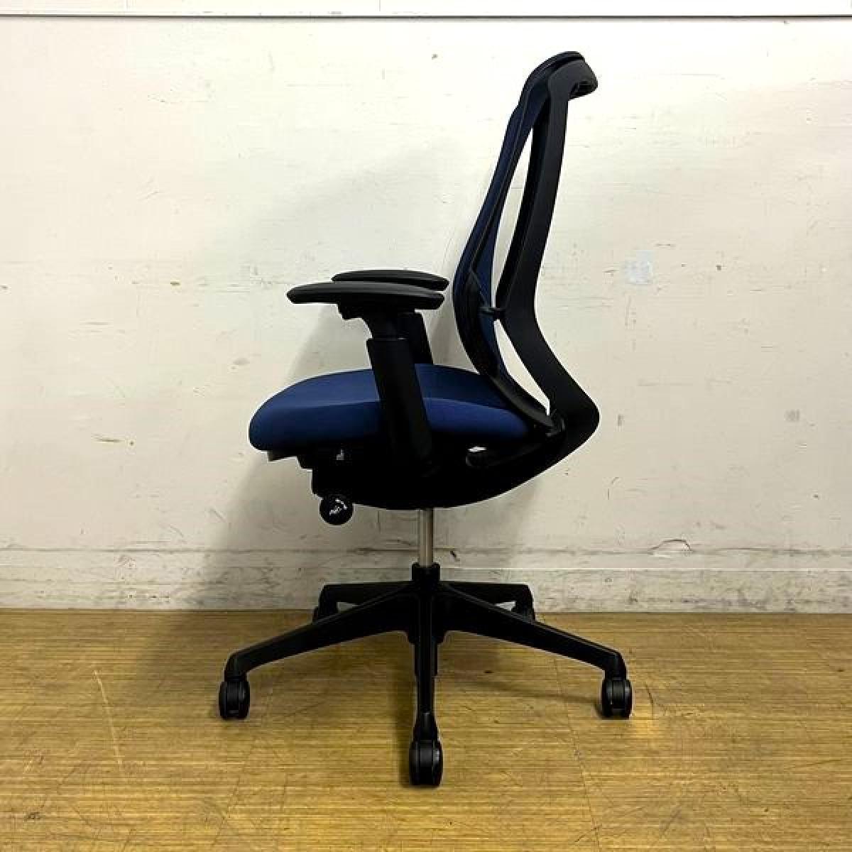 【新品ヘッドレスト交換済み】オカムラ/シルフィー/ブルー/可動肘