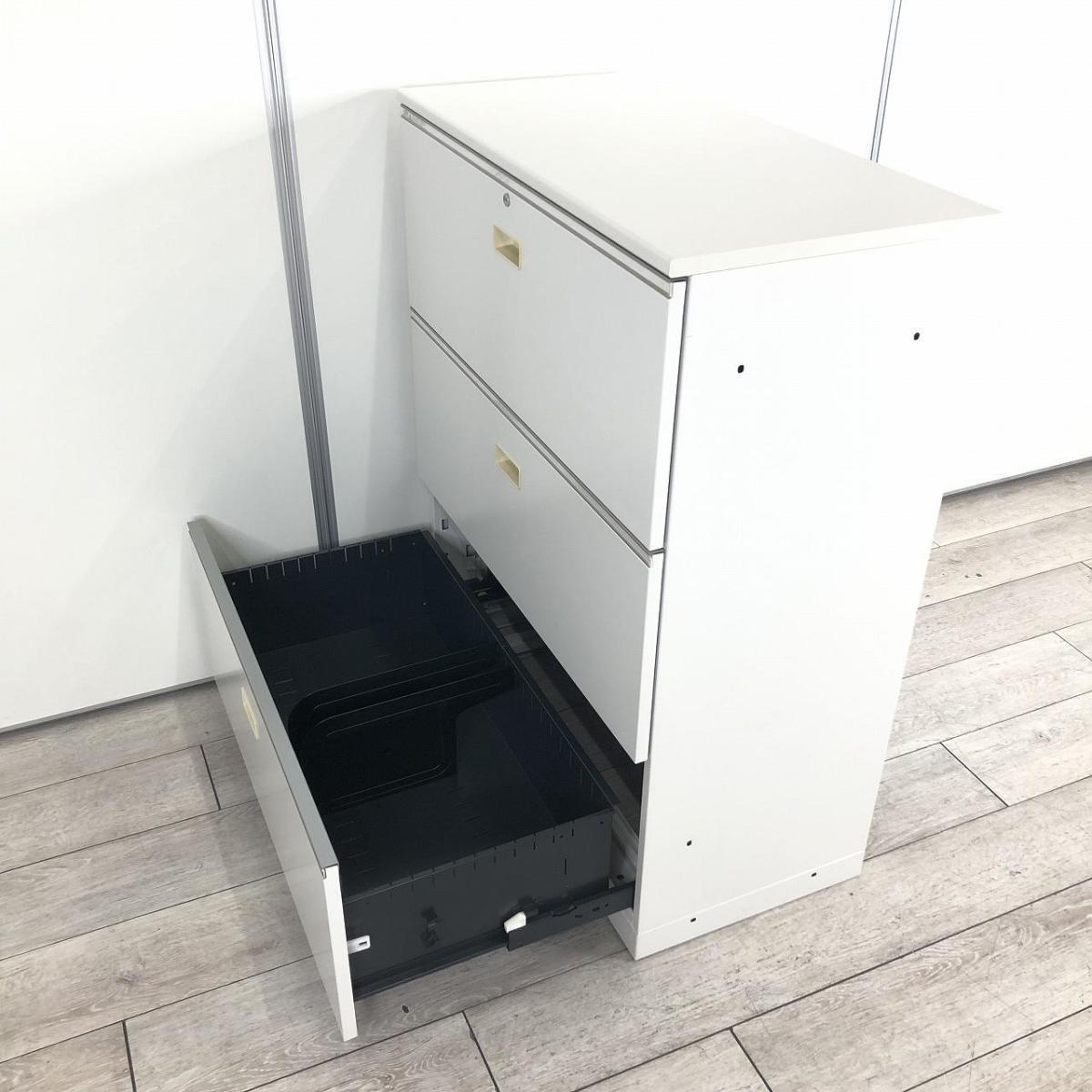 ■イトーキ(ITOKI)製 シンライン (THIN LINE) 3段ラテラル書庫 ローキャビネット ■ホワイト ■シリンダー錠