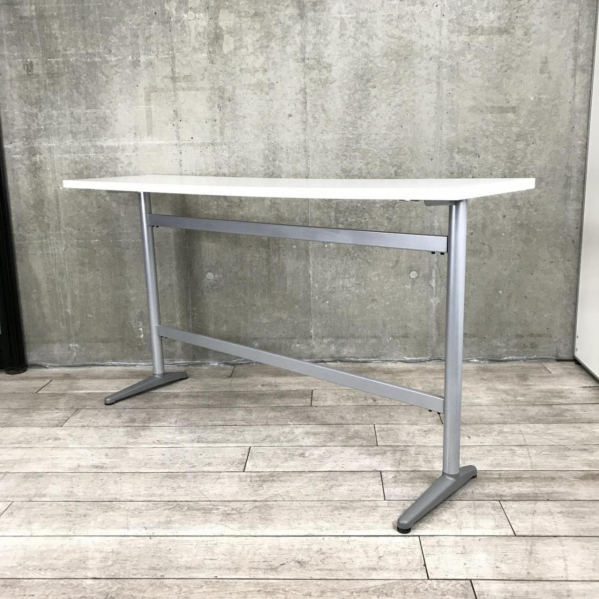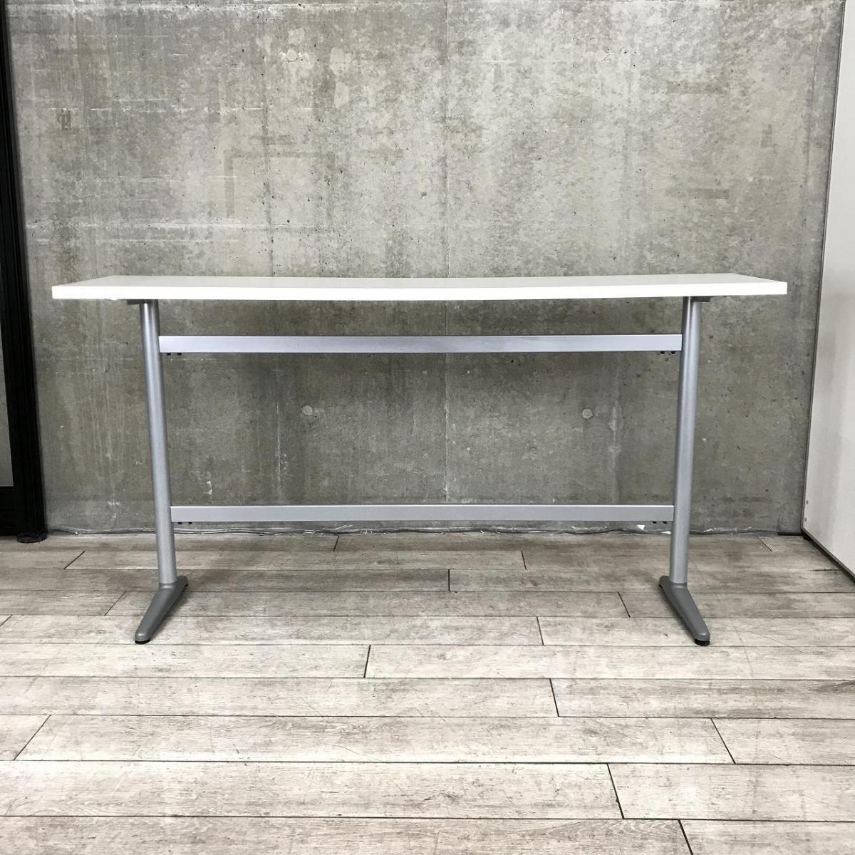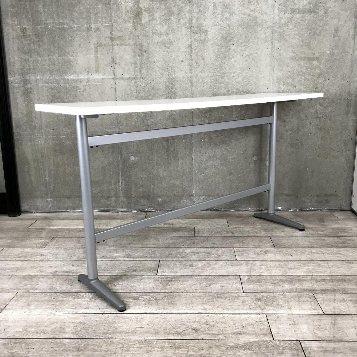 【オフィスの雰囲気ががらりと変わる!高さ950mmのハイテーブル!!】■パブリック製 ミーティングテーブル 角テーブル ハイテーブル W1800×D450×H950mm ■天板:ホワイト T字脚:シルバー- 新大阪店