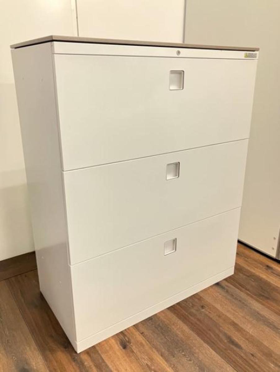 【オフィスの必需品!大容量の三段キャビネット!】■オカムラ(okamura)製 レクトラインシリーズ 3段ラテラル ローキャビネット ■天板/ベース付 ■シリンダー錠 ■ホワイト 【弊社使用欄:A01037187】