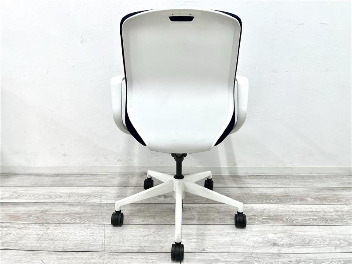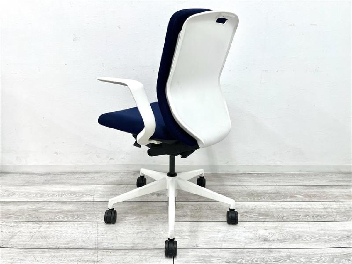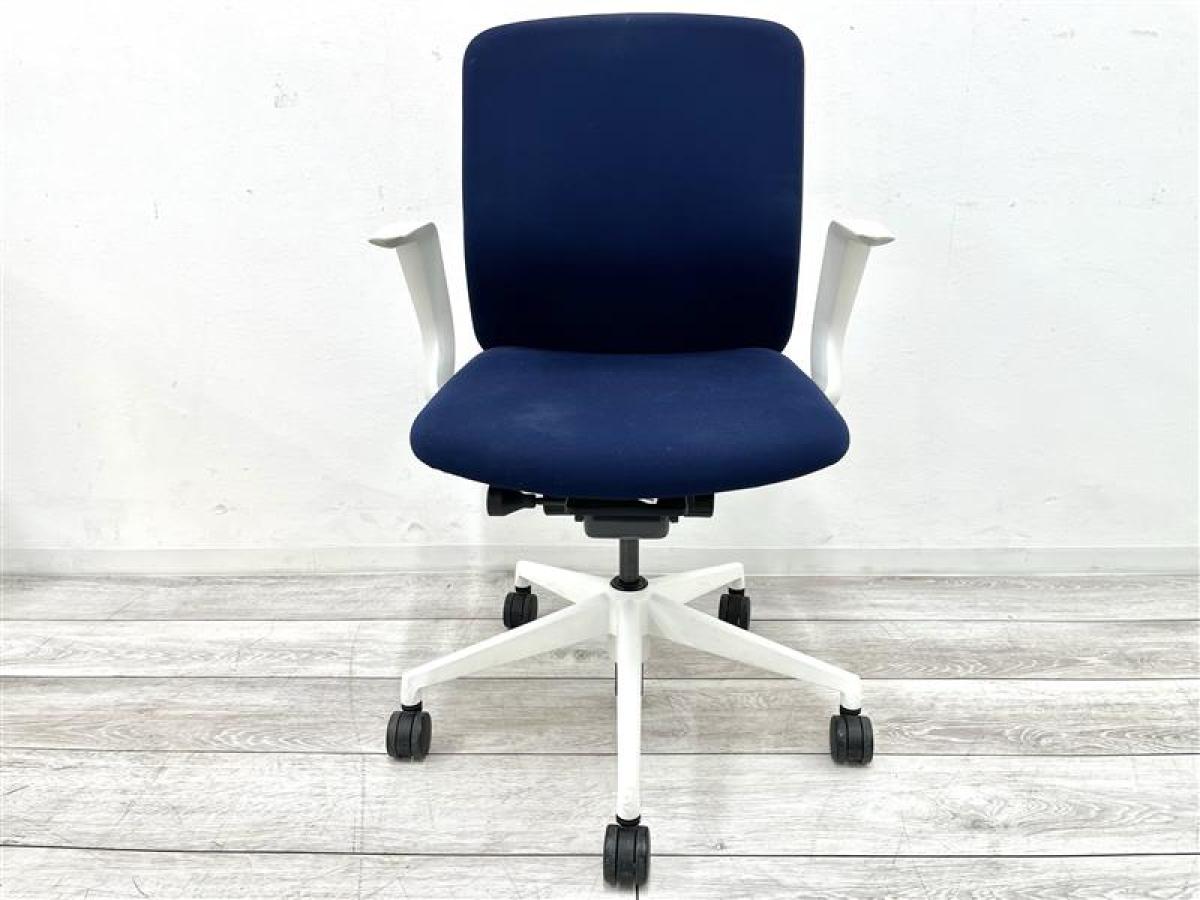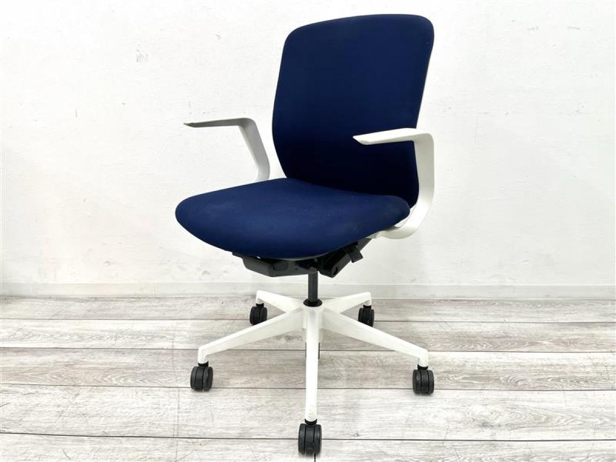 【定価約6万円】【柔らかさや美しさを感じさせる、知的でユニセックスなデザインの肘付きOAチェア!】■ウチダ クレネ (KRENE) ミドルバック肘付き 固定肘 ■ダークブルー×ホワイトシェル- 仙台店