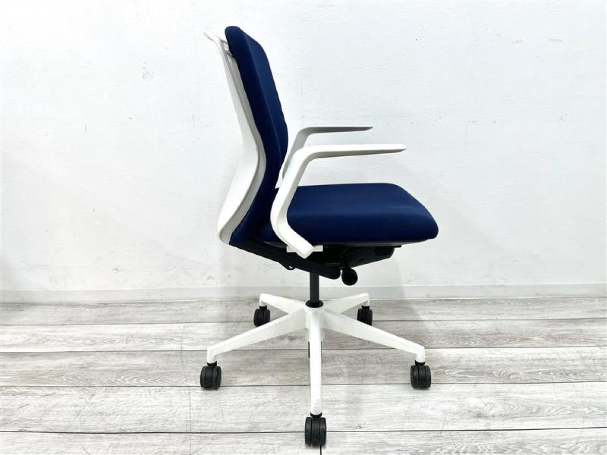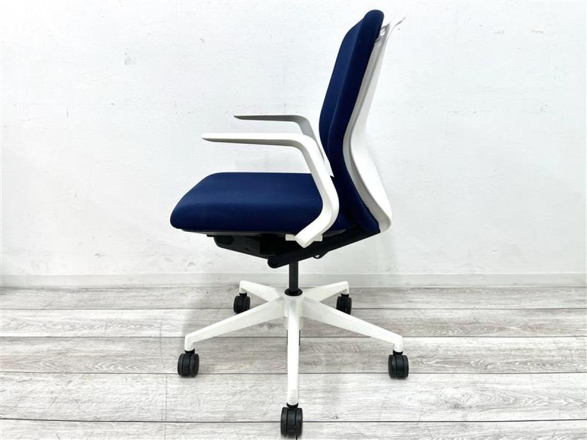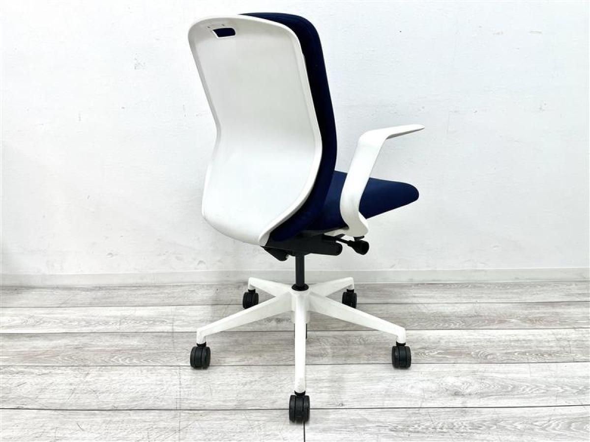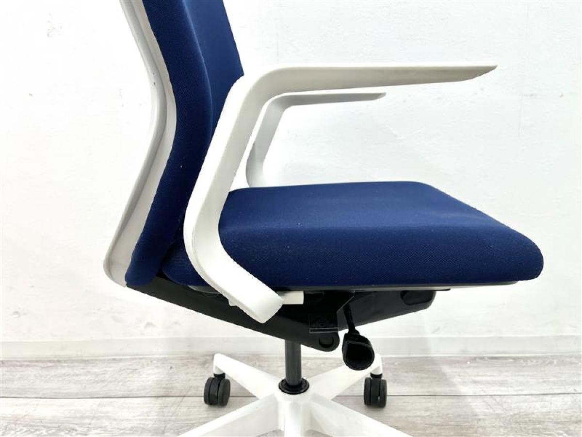 【定価約6万円】【柔らかさや美しさを感じさせる、知的でユニセックスなデザインの肘付きOAチェア!】■ウチダ クレネ (KRENE) ミドルバック肘付き 固定肘 ■ダークブルー×ホワイトシェル- 仙台店