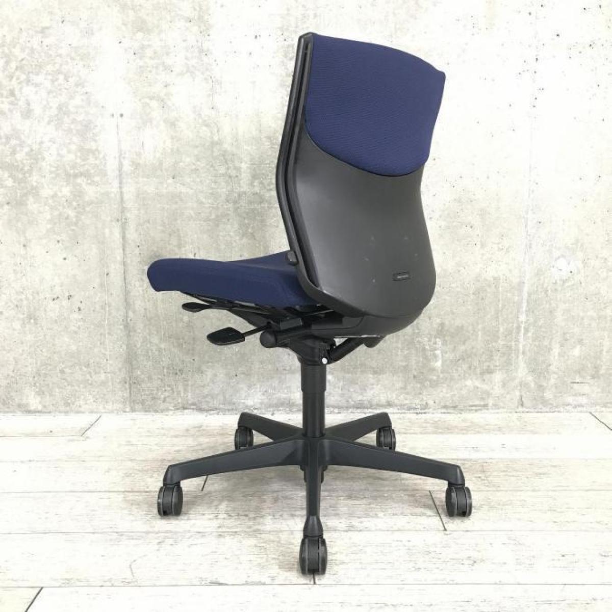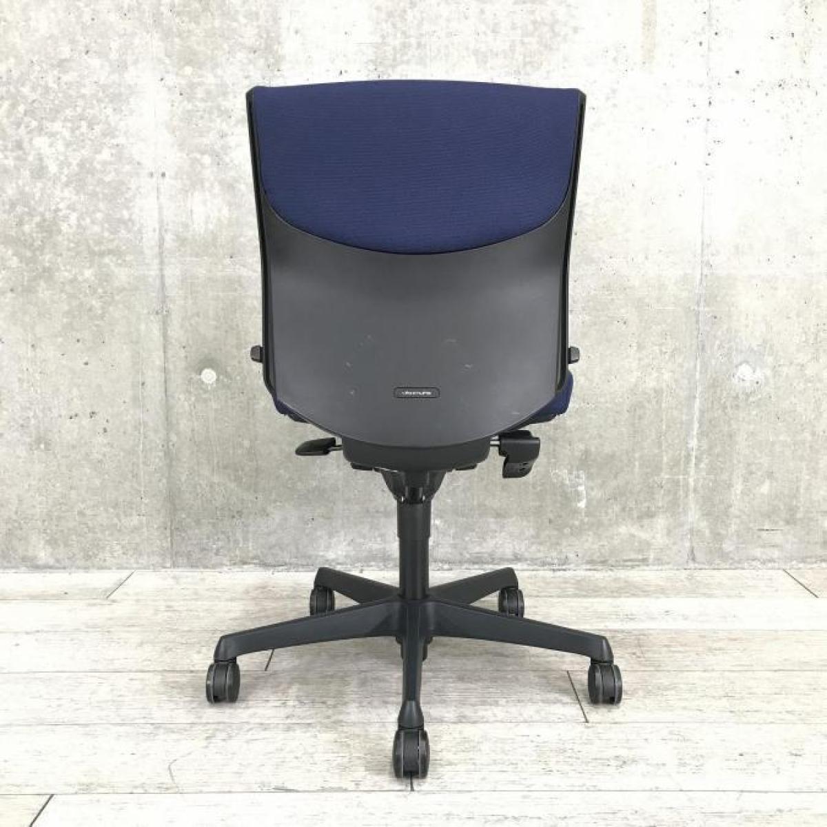 【長時間のデスクワークもランバーが快適にサポート!】■okamura(オカムラ)製 エスクードチェア ローバック 色:ダークブルー 肘無し