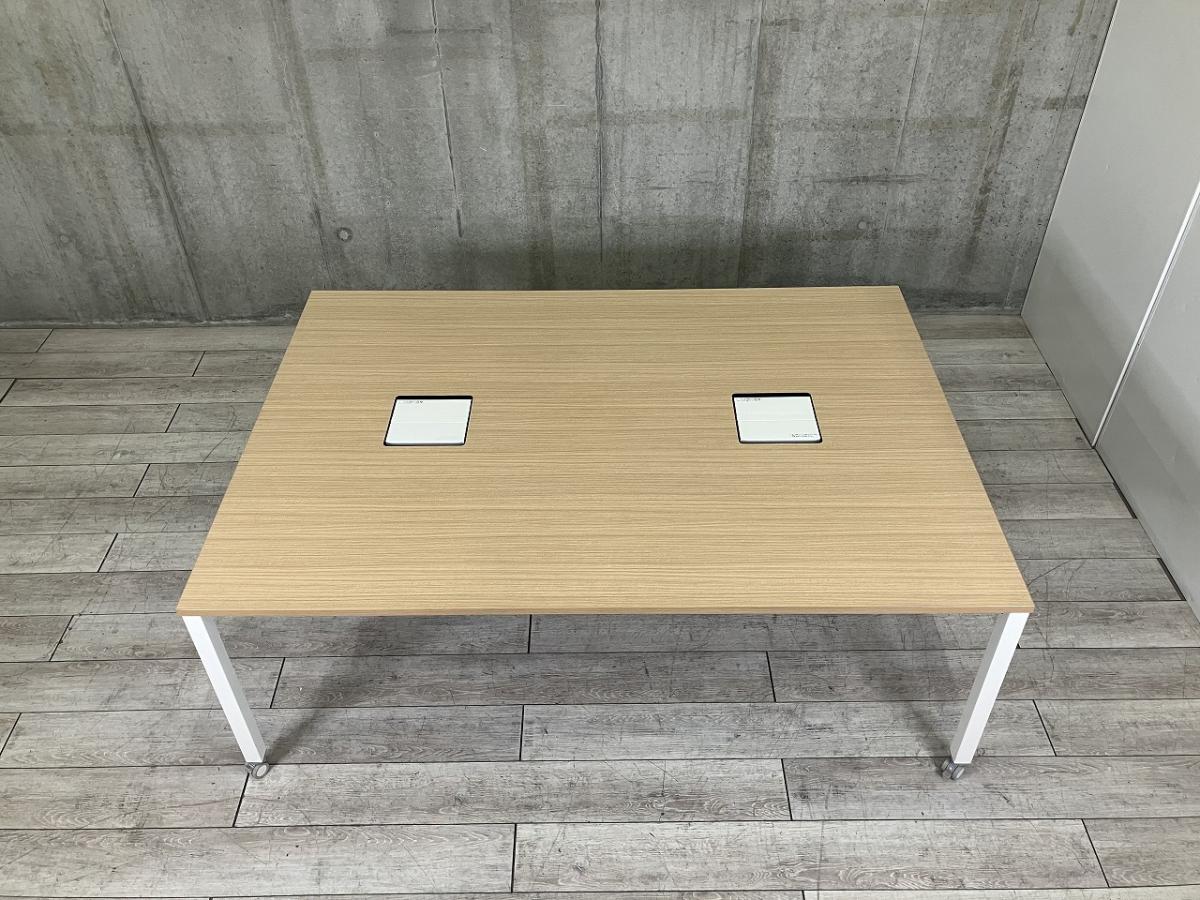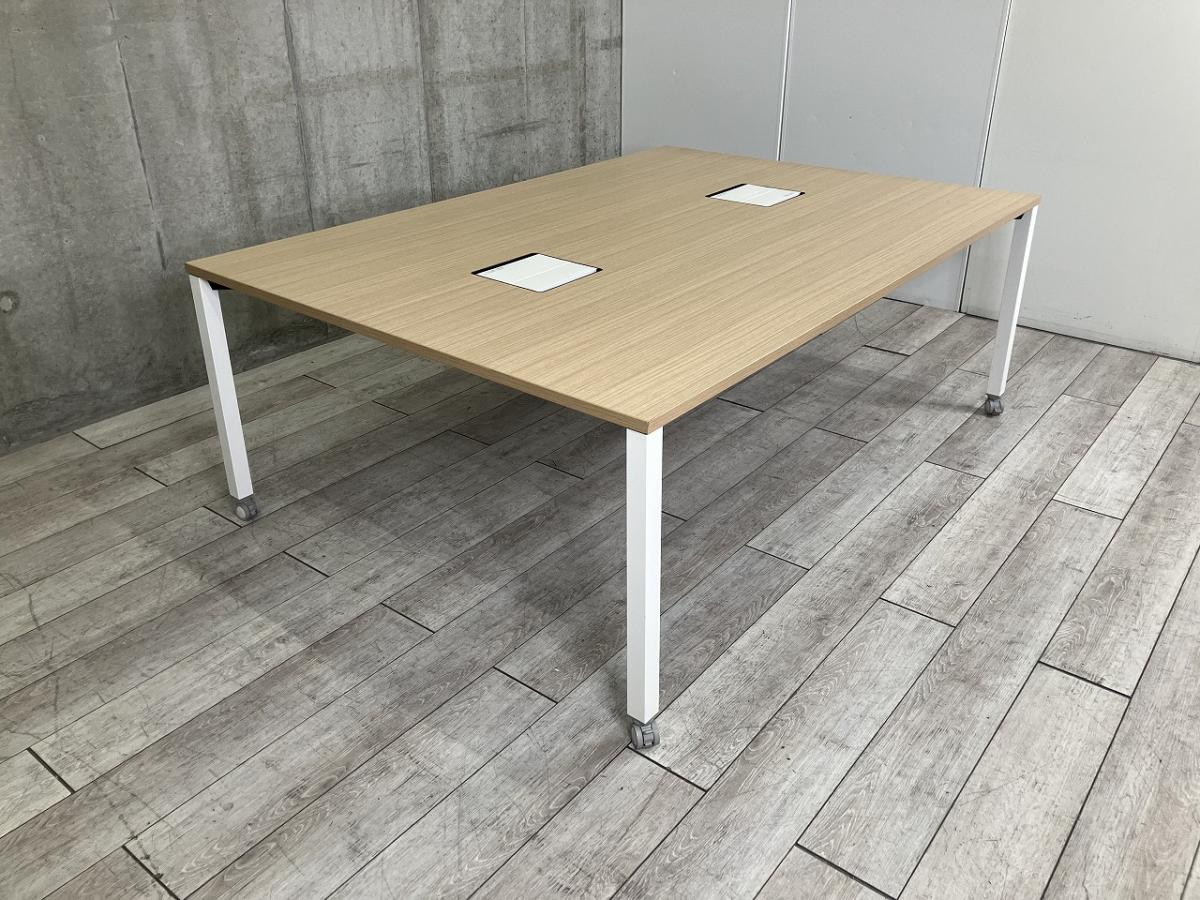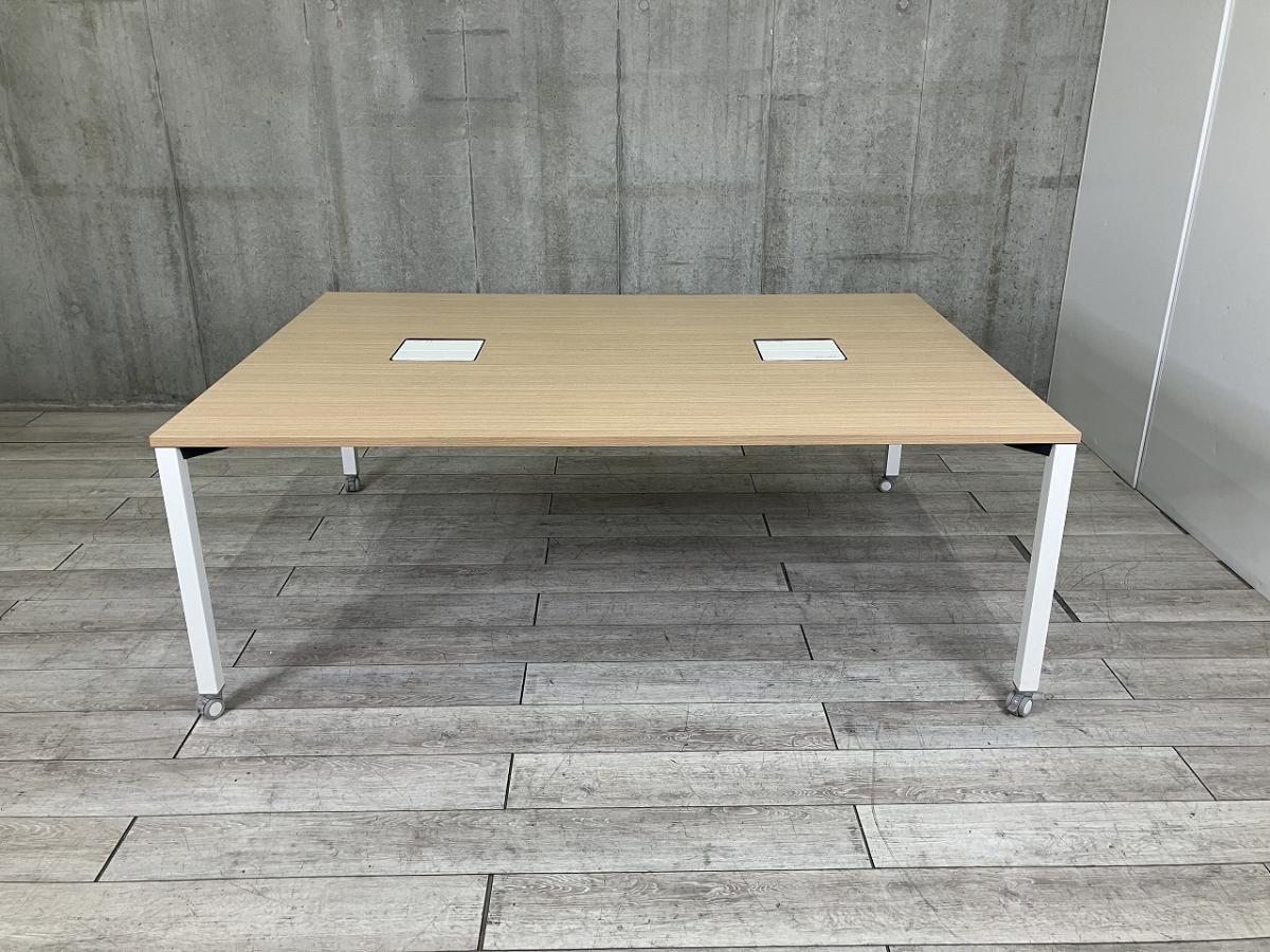 【4~6人用】【デザイン性の高い大型ワークテーブルが入荷!】■イトーキ(ITOKI) ミーティングテーブル 会議用 リフレッシュスペース ■W2000×D1400 ■ナチュラル天板×ホワイト脚 ■配線カバーつき ■キャスター脚- つくば店