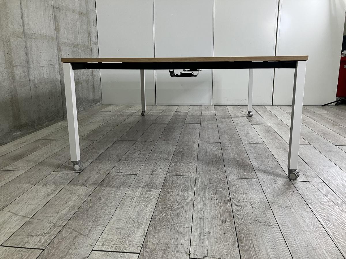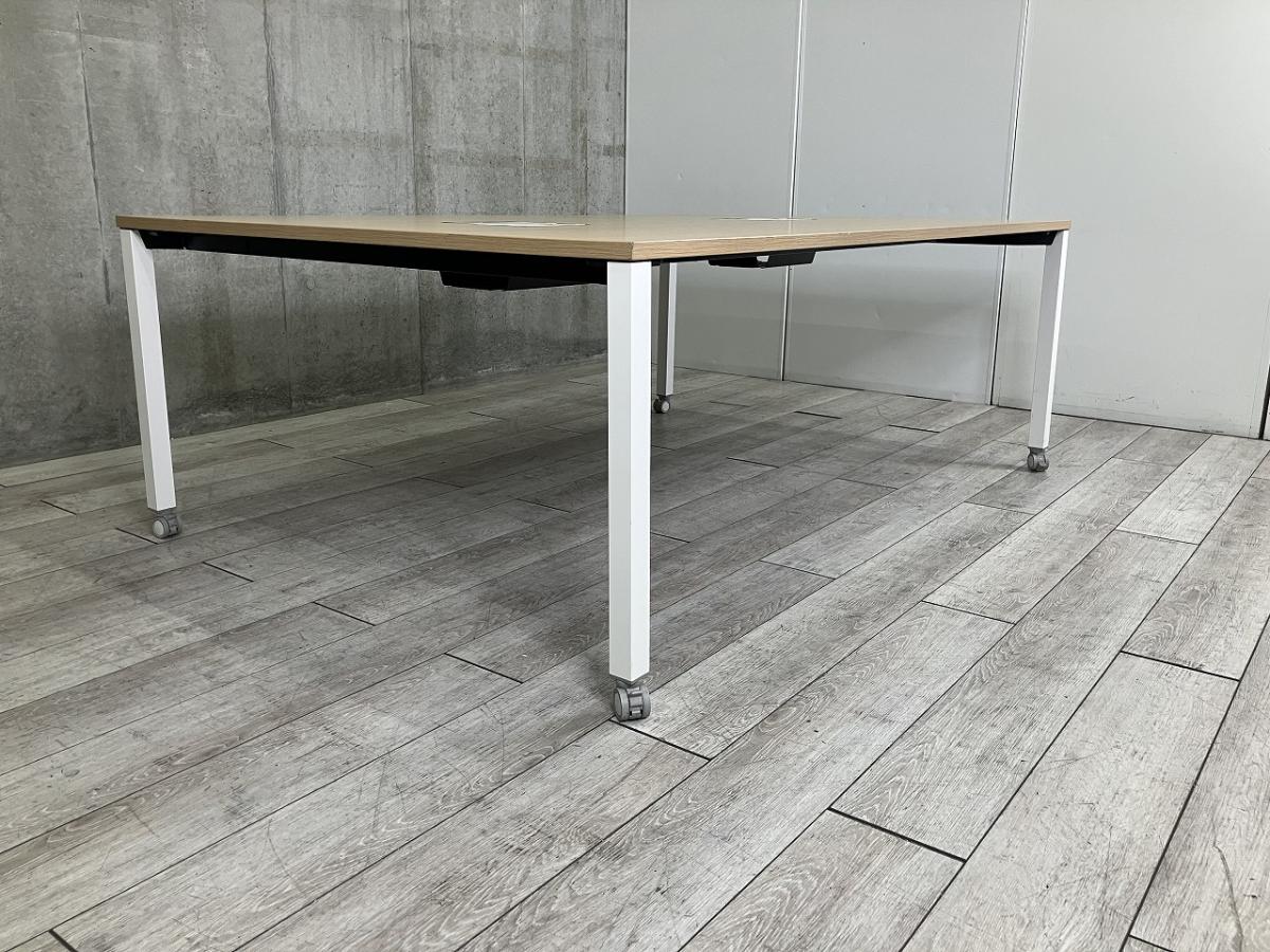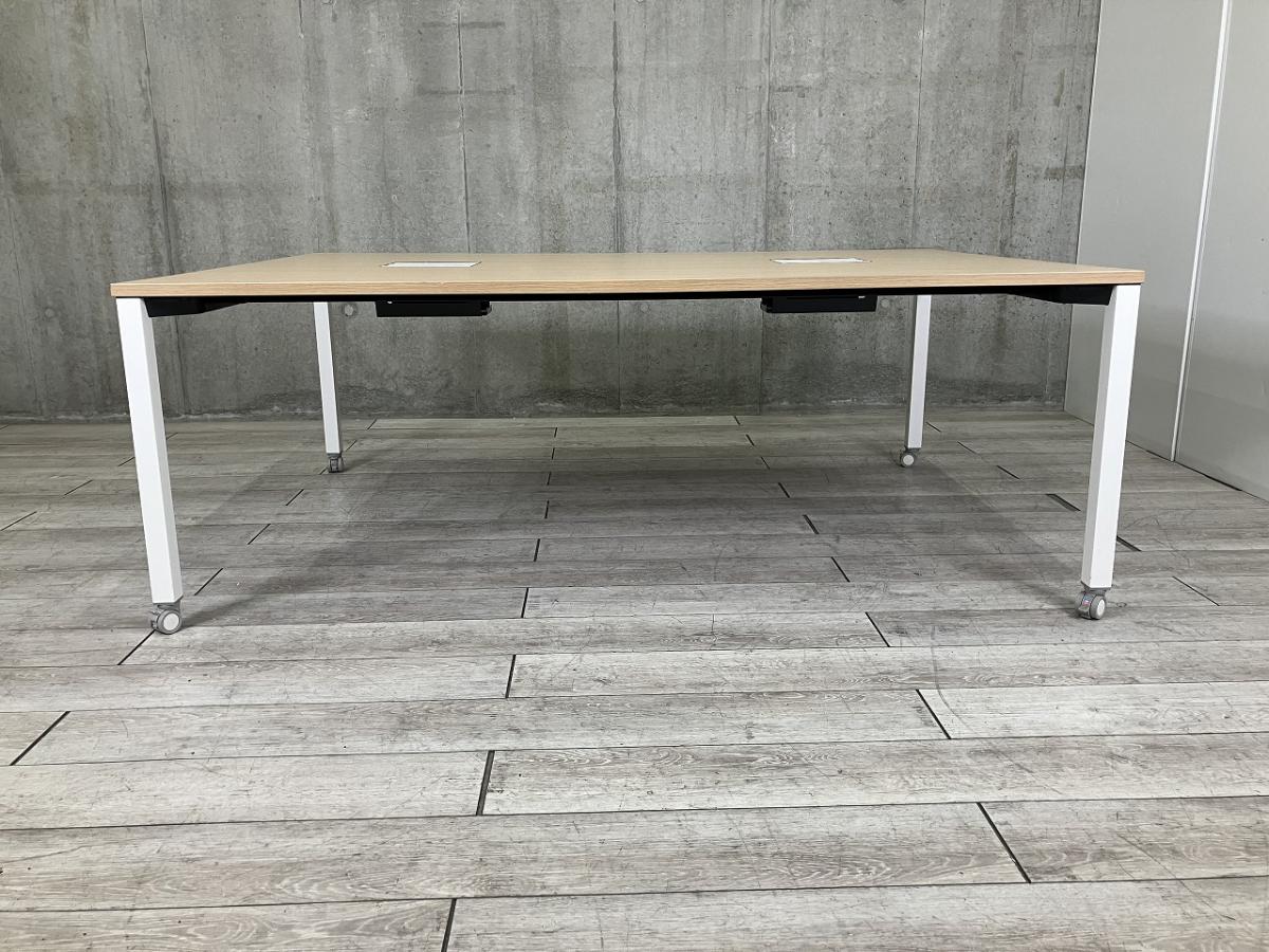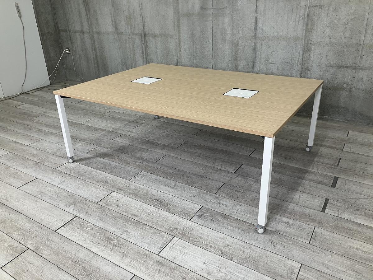 【4~6人用】【デザイン性の高い大型ワークテーブルが入荷!】■イトーキ(ITOKI) ミーティングテーブル 会議用 リフレッシュスペース ■W2000×D1400 ■ナチュラル天板×ホワイト脚 ■配線カバーつき ■キャスター脚- つくば店