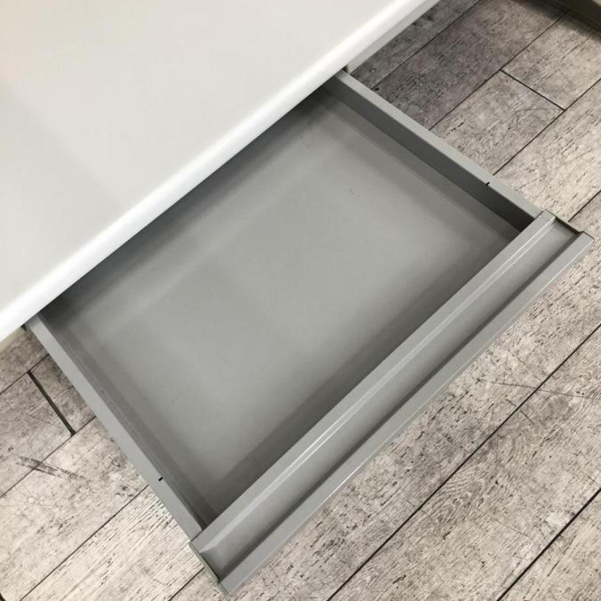 【在庫入れ替えセール品】【増員や拠点開設時におすすめ!幅1400㎜でゆとりのあるワークスペース!】■ウチダ(UCHIDA)製 ジャスト(JUST) シリーズ 平机 ■引き出し付 ■配線口付 ■W1400㎜ ■グレー【弊社使用欄:A00996288 】- 在庫数
