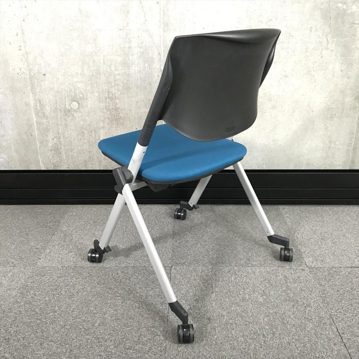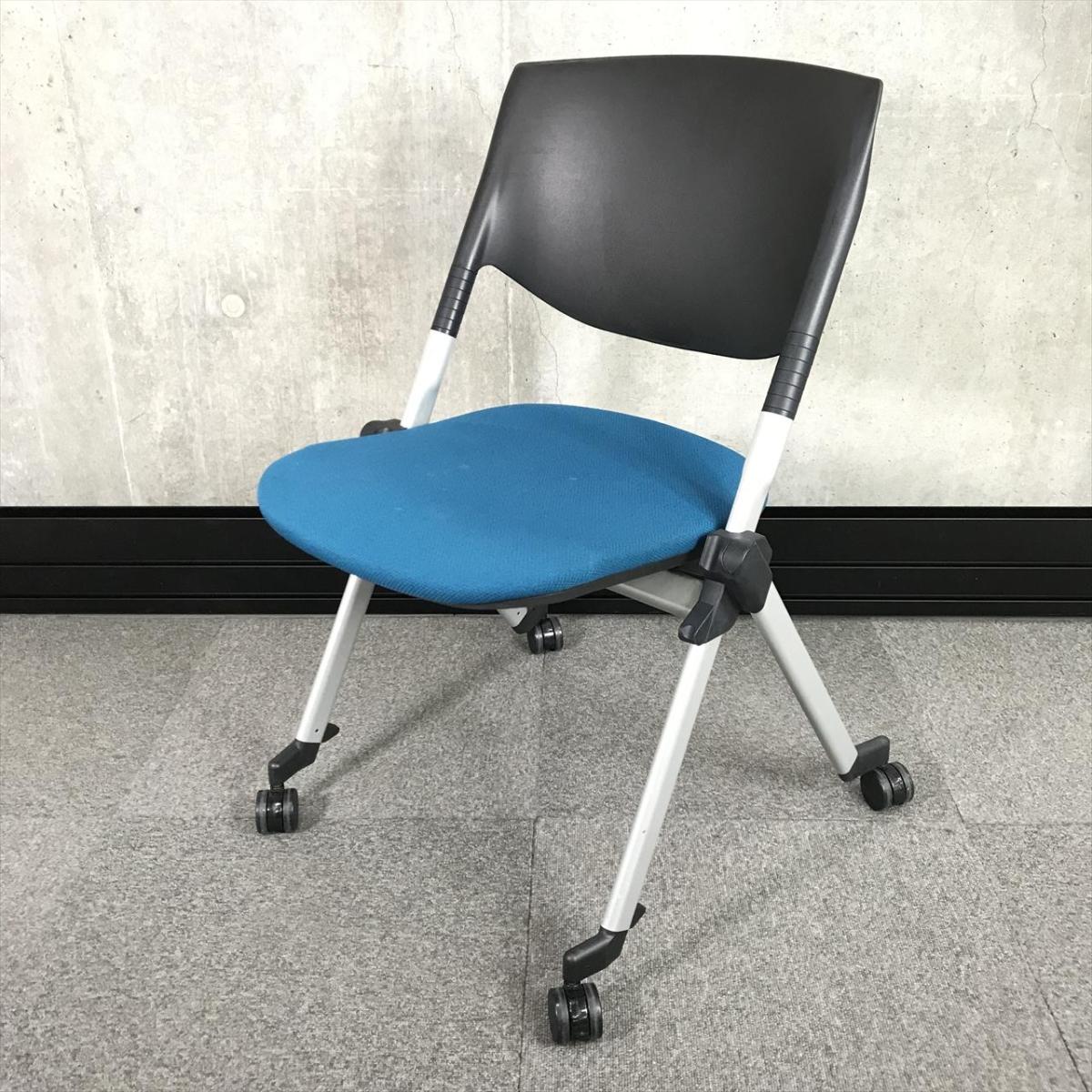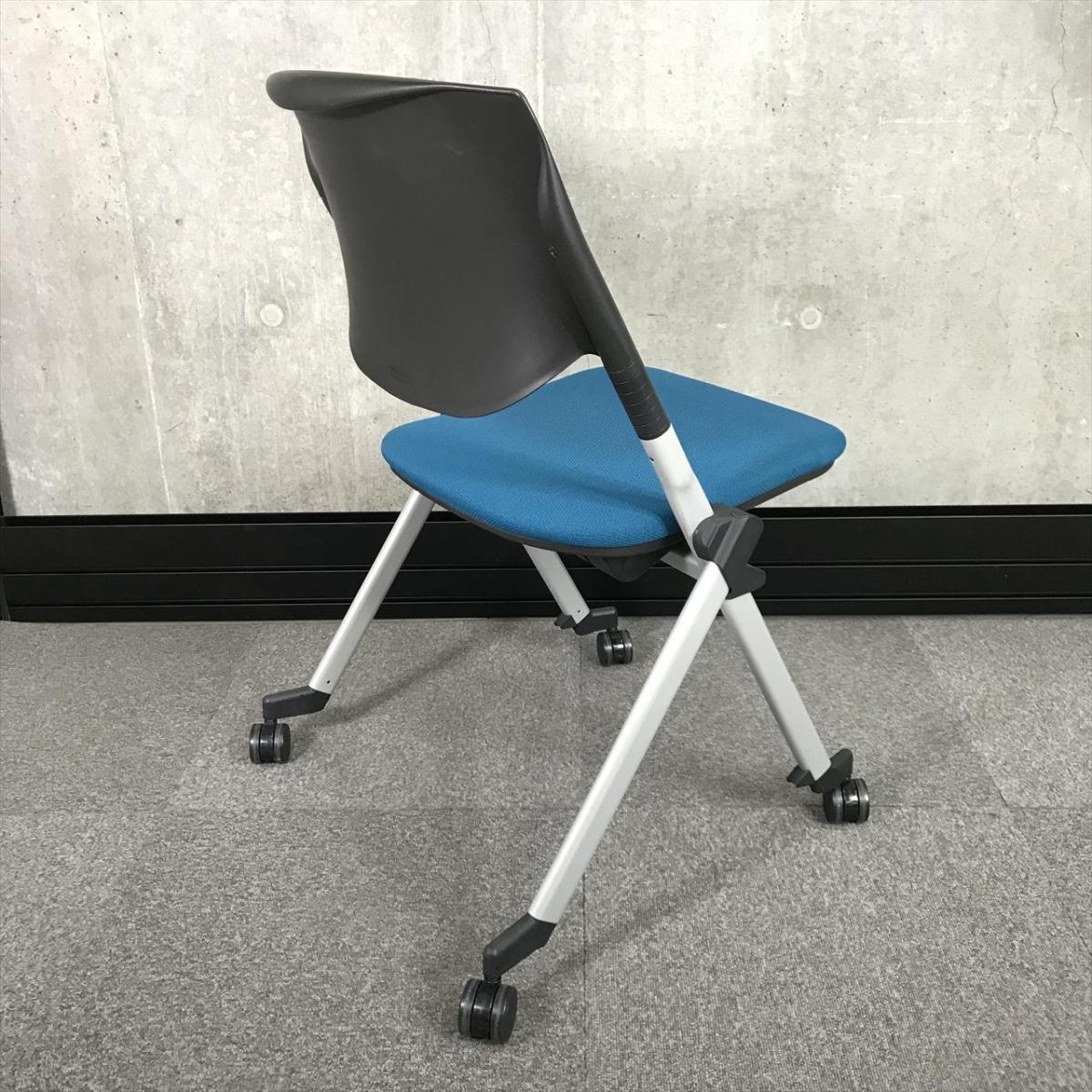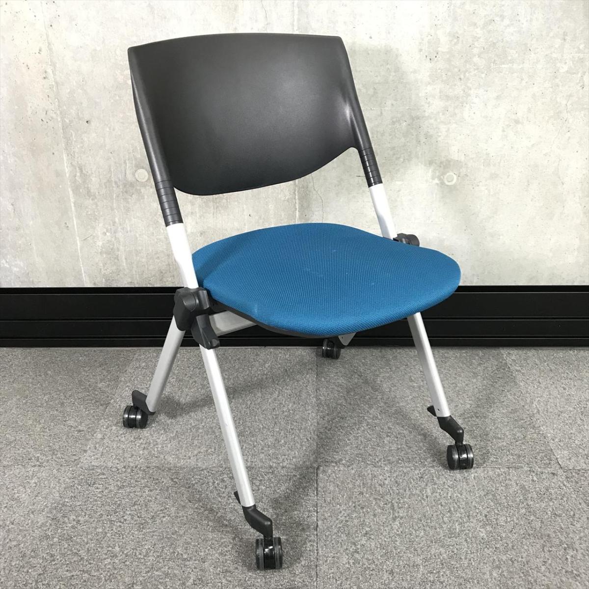 【関東倉庫在庫品】【折り畳んで横に重ねて収納可能!】■オカムラ製 リータⅡ ネスティングチェア ■ブルー【弊社使用欄:A00979718】【ECBMC】- 在庫数