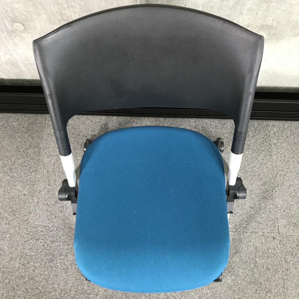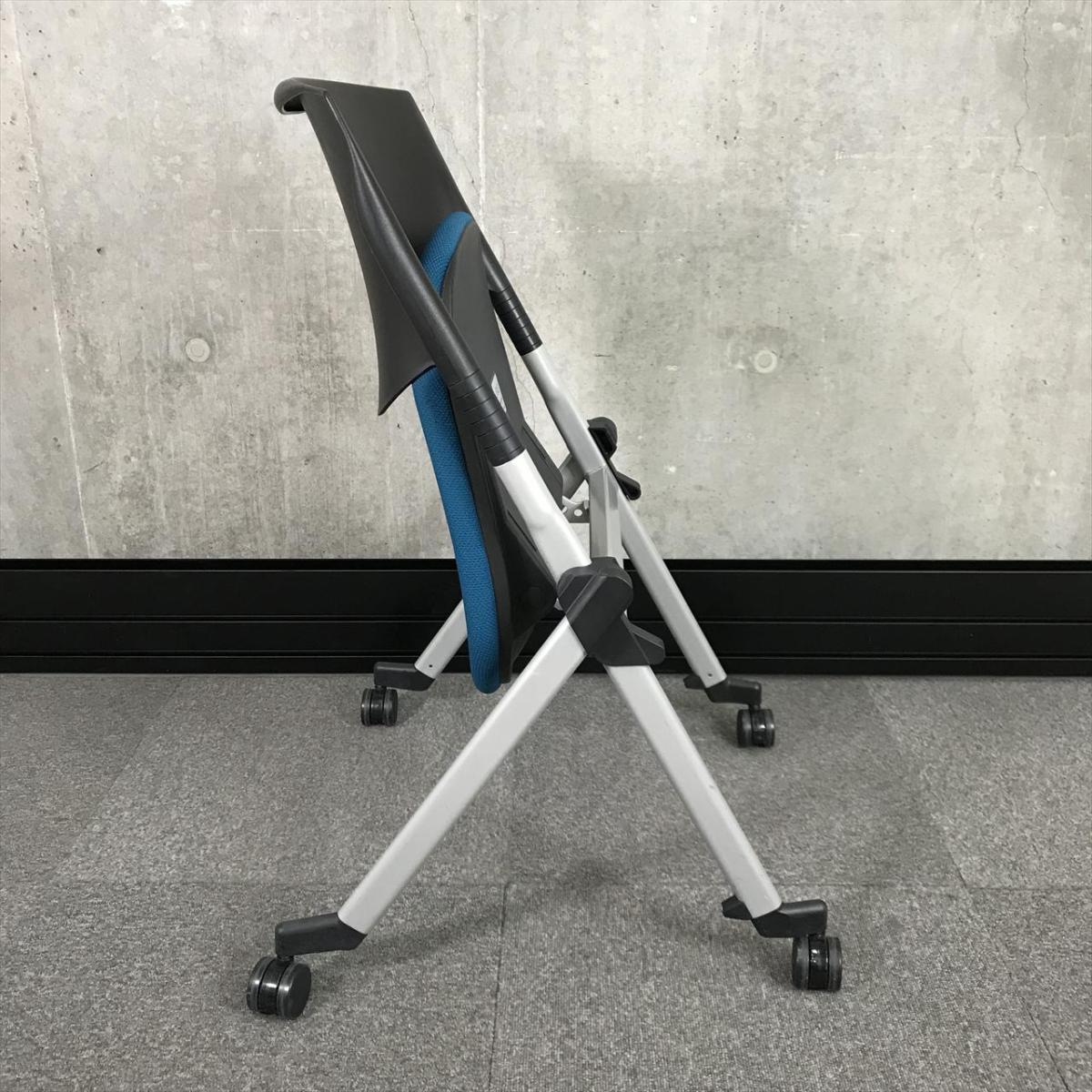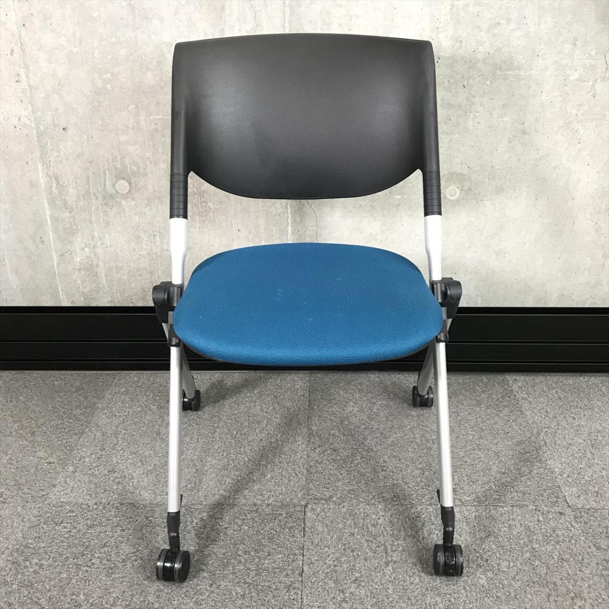 【関東倉庫在庫品】【折り畳んで横に重ねて収納可能!】■オカムラ製 リータⅡ ネスティングチェア ■ブルー【弊社使用欄:A00979718】【ECBMC】- 在庫数