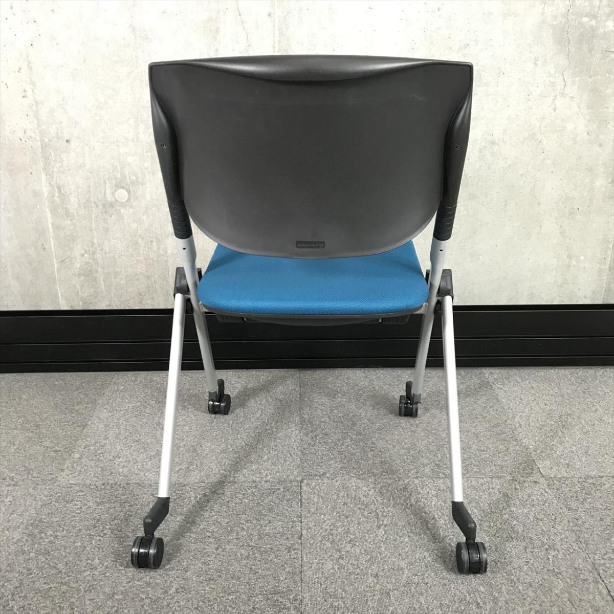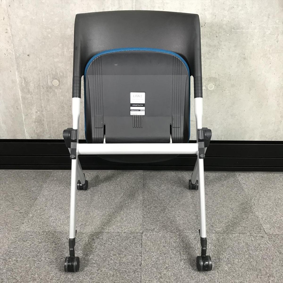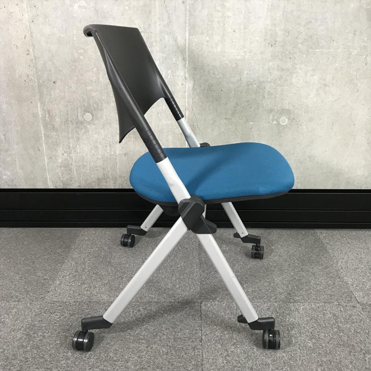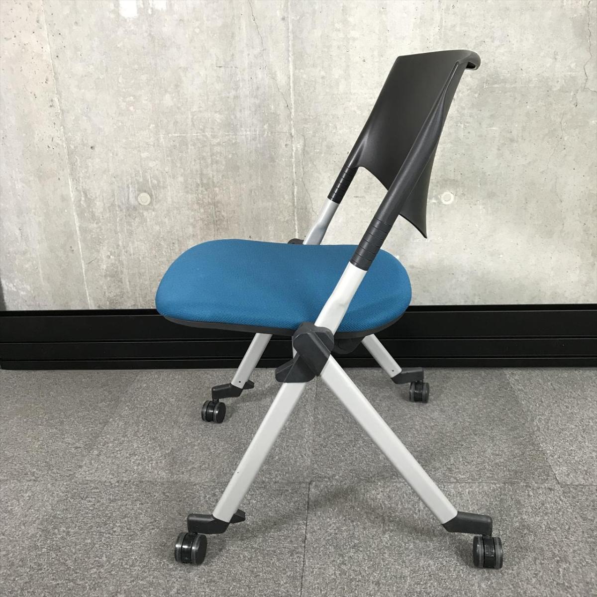 【関東倉庫在庫品】【折り畳んで横に重ねて収納可能!】■オカムラ製 リータⅡ ネスティングチェア ■ブルー【弊社使用欄:A00979718】【ECBMC】- 在庫数