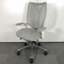 【前傾チルト付!流れるような美しいフォルムの最高級メッシュチェア!】■オカムラ(okamura)製 Sabrina(サブリナ)チェア 肘付ハイバック ■アジャストアーム(可動肘) ■背面メッシュ ■ライトグレー × ホワイトフレーム