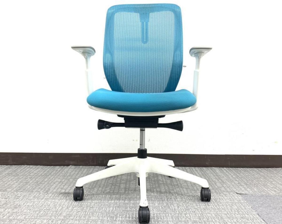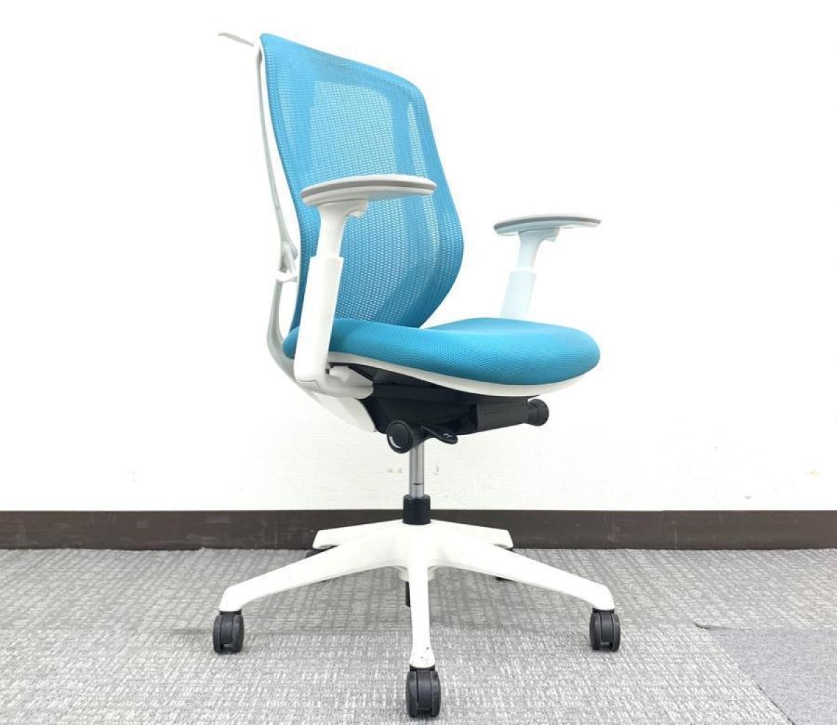 【西】~ブルーが映えるアーム付きメッシュチェア~【オカムラ】【シルフィー】【可動肘】【ライトブルー】【前傾姿勢】【フレーム・脚ホワイト】【チェア】【椅子】【イス】【事務椅子】【デスク】【机】【書庫】【書棚】【棚】【ラック】【収納】【格安】【安い】【メーカー】【レイアウト変更】【模様替え】【福岡オフィス家具】【福岡中古家具】【中古事務什器】【中古チェア】【中古椅子】
