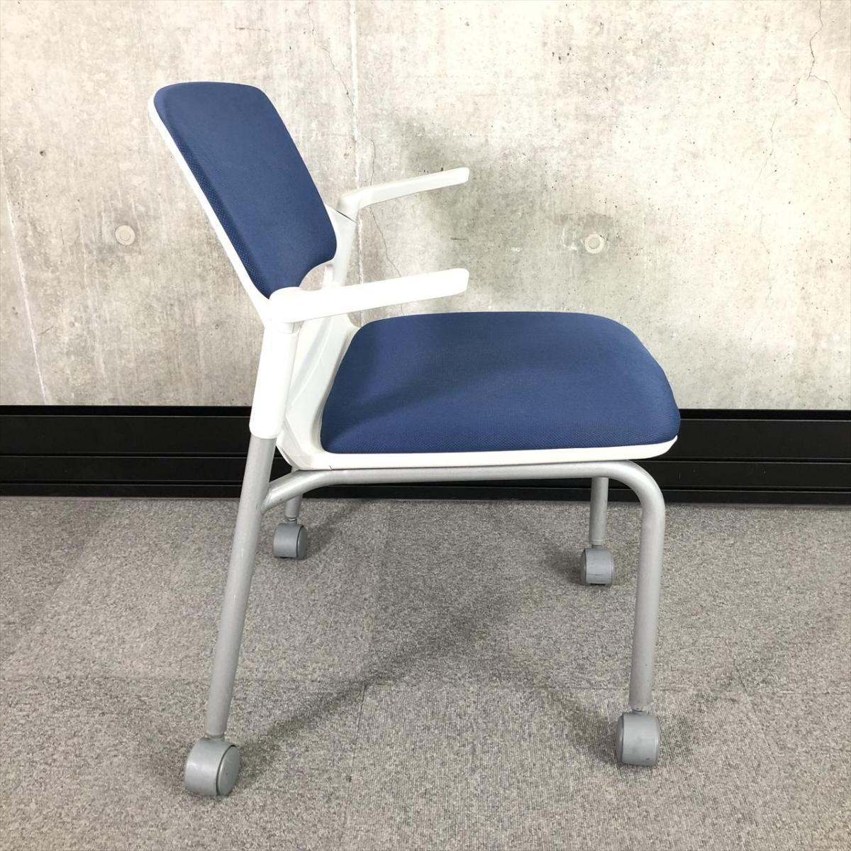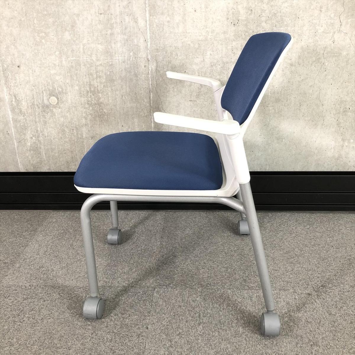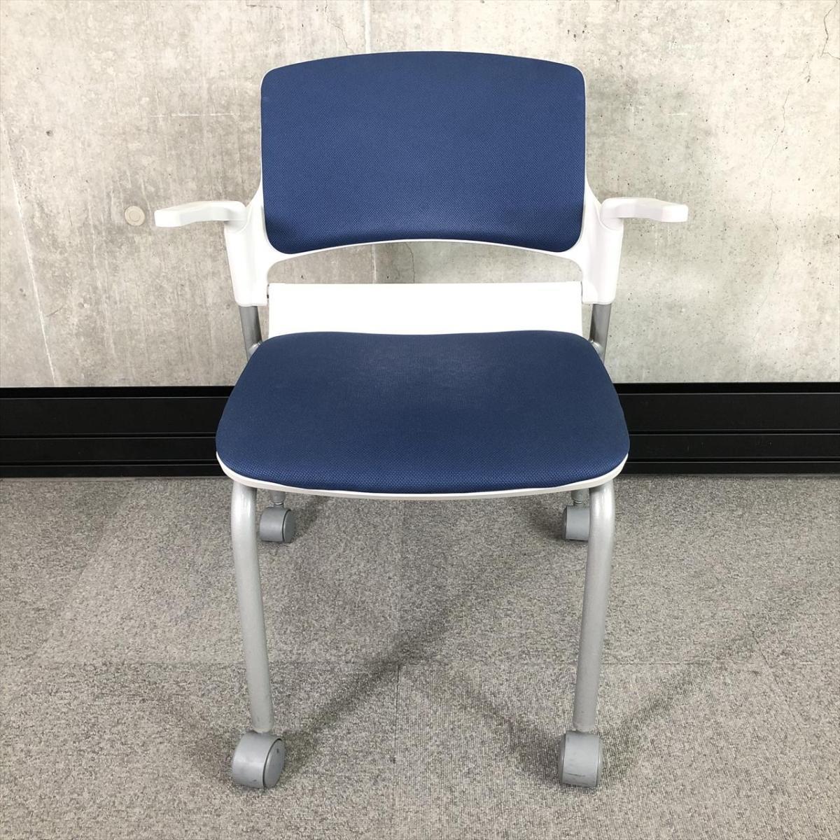 【積み重ねられるスタッキングタイプ!省スペース化が叶う!】■内田洋行(UCHIDA) MF-180 スタッキングチェア ミーティングチェア ■背パッドあり 固定肘付き キャスター付き ■ブルー【A01009354】【IB】※関東倉庫品在庫がある店舗一覧