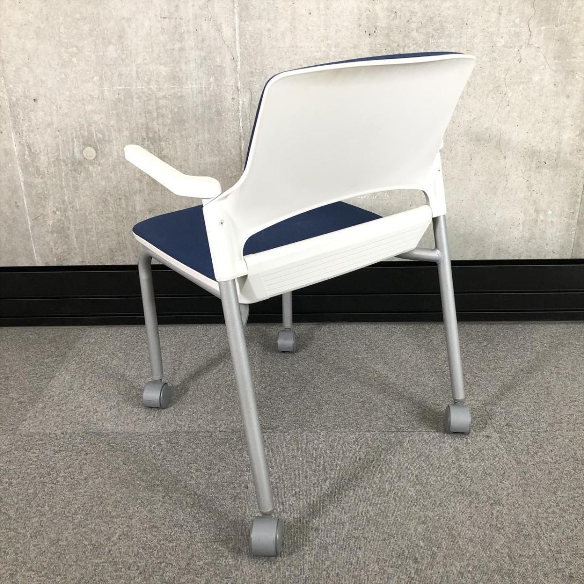 【残り2脚の為、お安く!】【キャスター付きで使いやすい!ミーティングに最適!】■ウチダ(UCHIDA)製 MF-180シリーズ スタッキングチェア ミーティングチェア ■キャスター付き ■レイズンブルー×ホワイトシェル