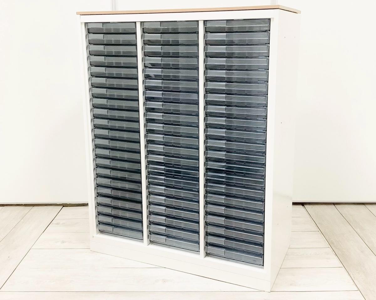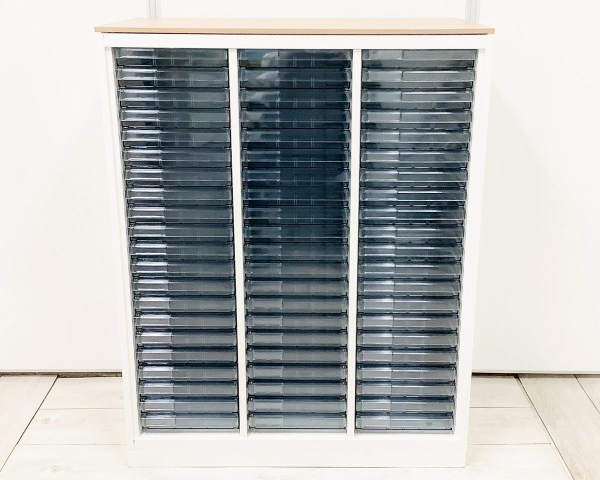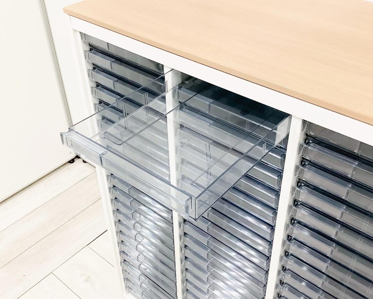 【書類・備品整理の必需品!書類や備品のストックにピッタリ!※1段目のみ浅型仕様】オカムラ レクトライン クリスタルトレー 書類 引き出し 透明 ケース ローキャビネット 整理 中古家具 オフィス家具 福岡 九州最大級《オフィスバスターズ福岡博多店は、福岡を拠点として、日本全国へ中古オフィス用品・オフィス家具を提供しております》