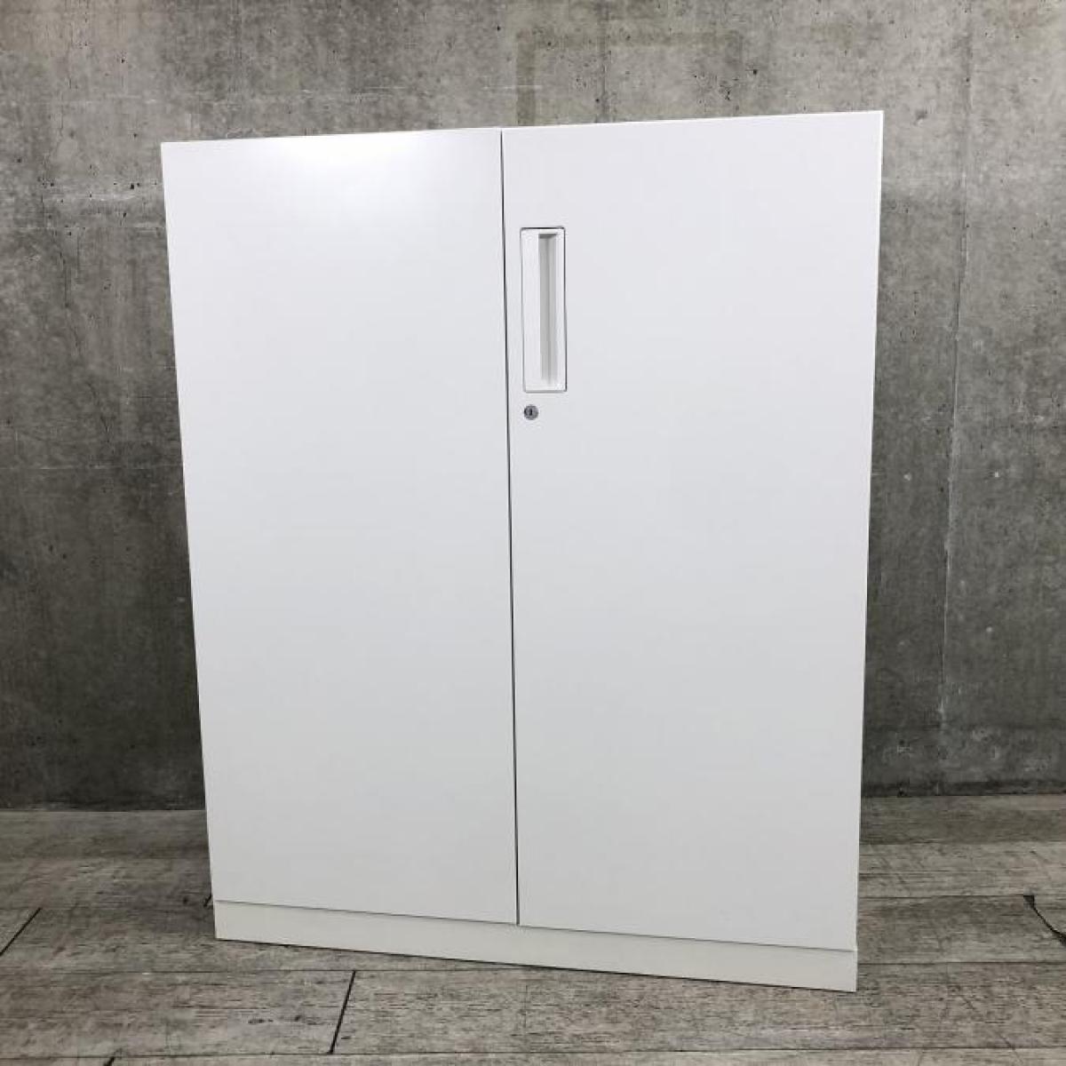 【収納物がひとめで分かる両開き戸タイプ!】■コクヨ(KOKUYO)製 エディア(EDIA)シリーズ 両開き書庫 ローキャビネット H1130㎜ ■天板・ベース付 ■ホワイト ■シリンダー錠【IB】