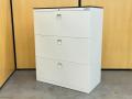 オカムラ レクトライン 3段ラテラル書庫 ホワイト天板 シリンダー錠 鍵付き ※取っ手部分に若干日焼けあり