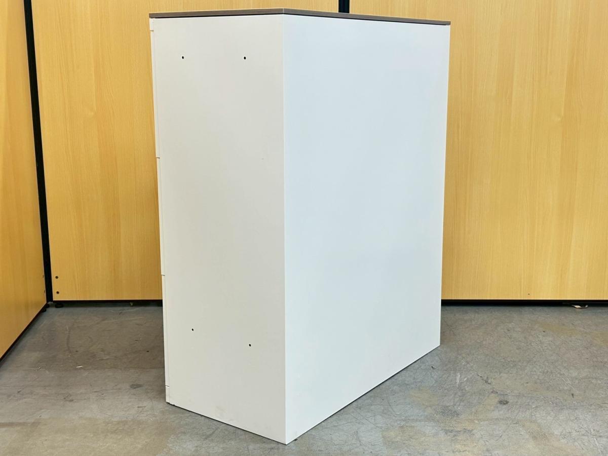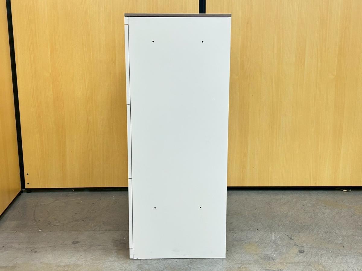 オカムラ レクトライン 3段ラテラル書庫 ホワイト天板 シリンダー錠 鍵付き ※取っ手部分に若干日焼けあり