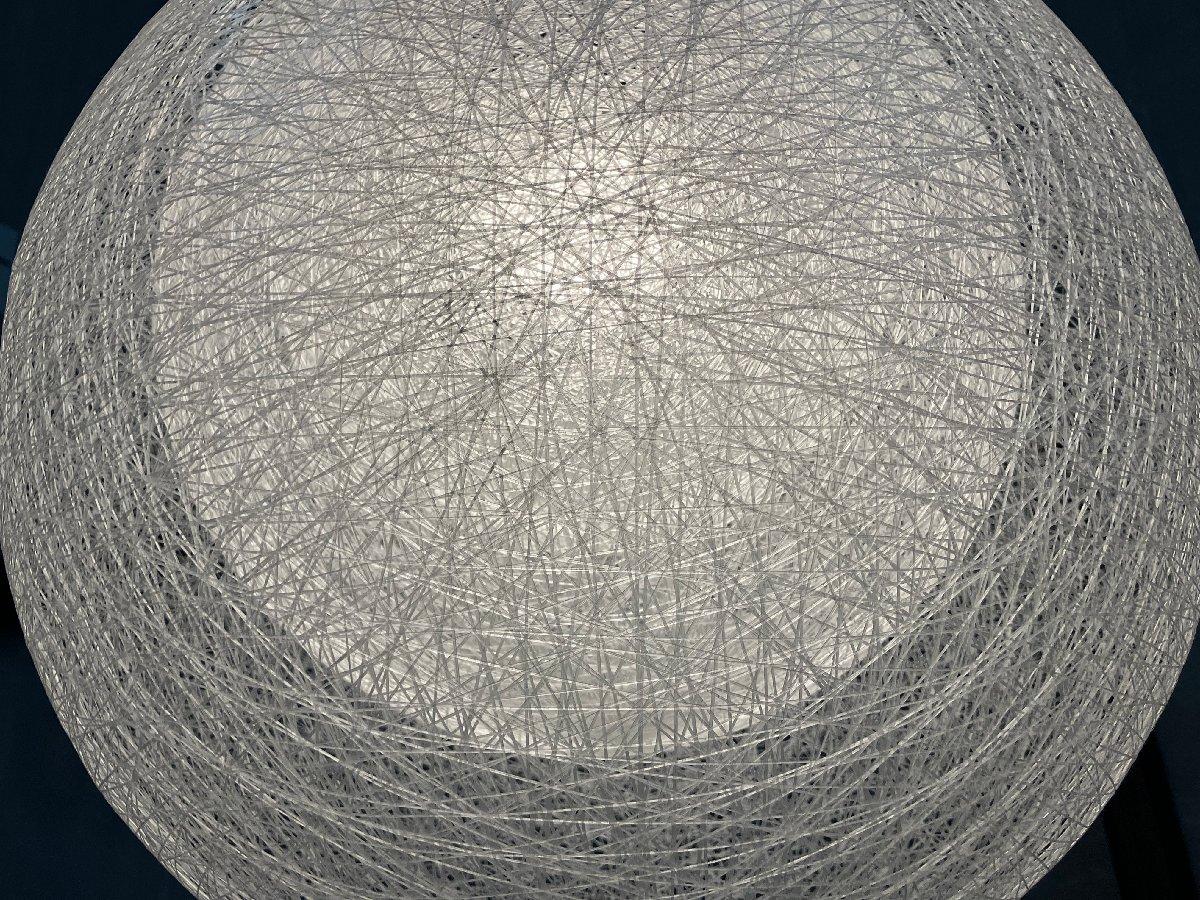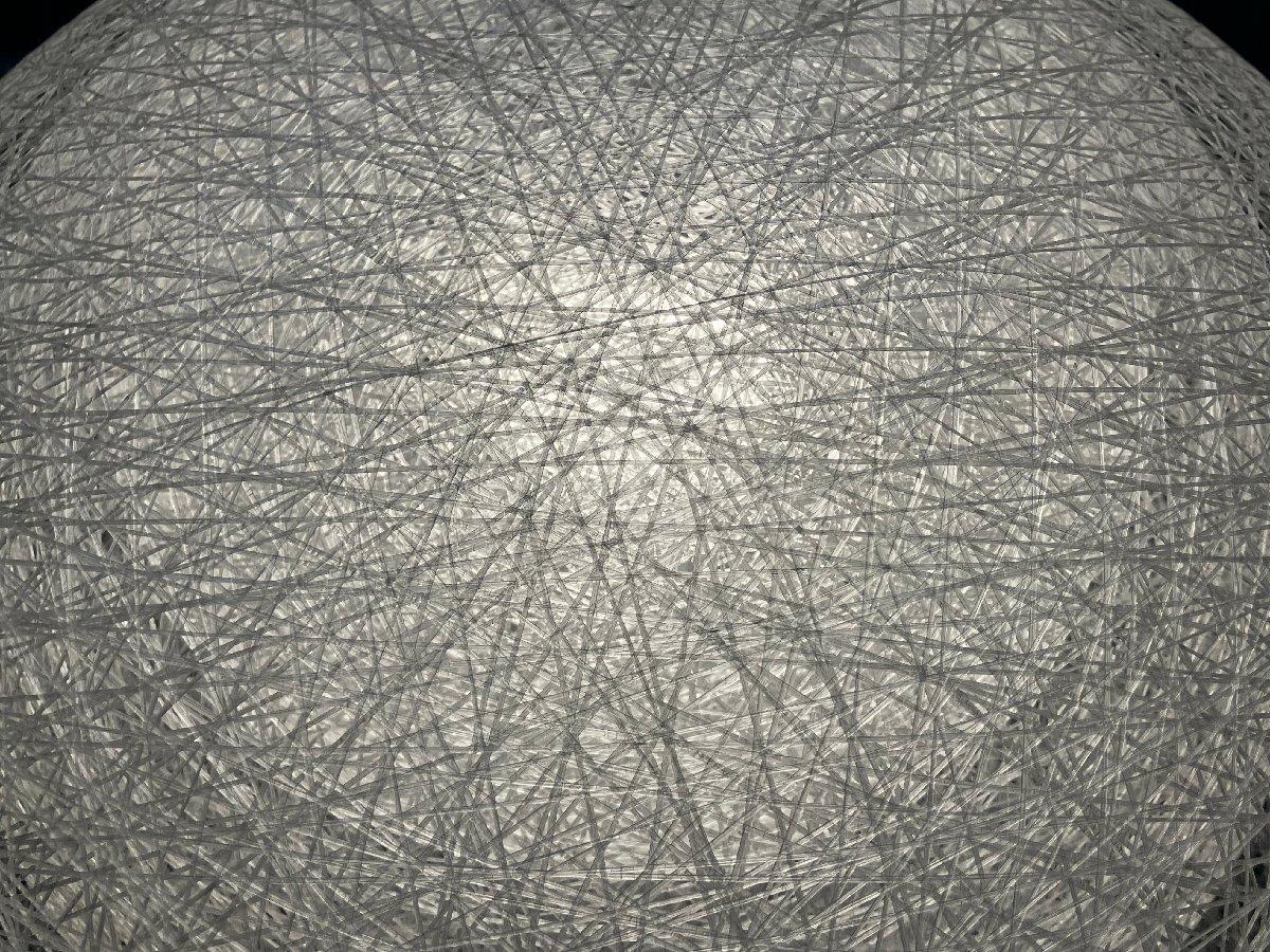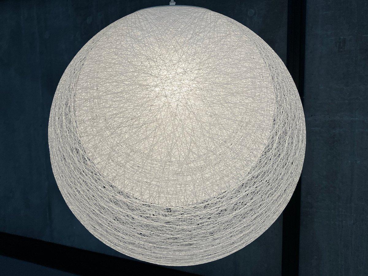 ヤマギワより、グラスファイバーと樹脂の糸によって繭のような繊細なフォルムを成型したペンダントライト『MAYUHANA(マユハナ)』です。