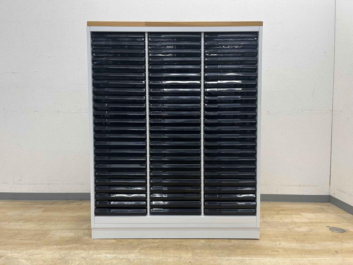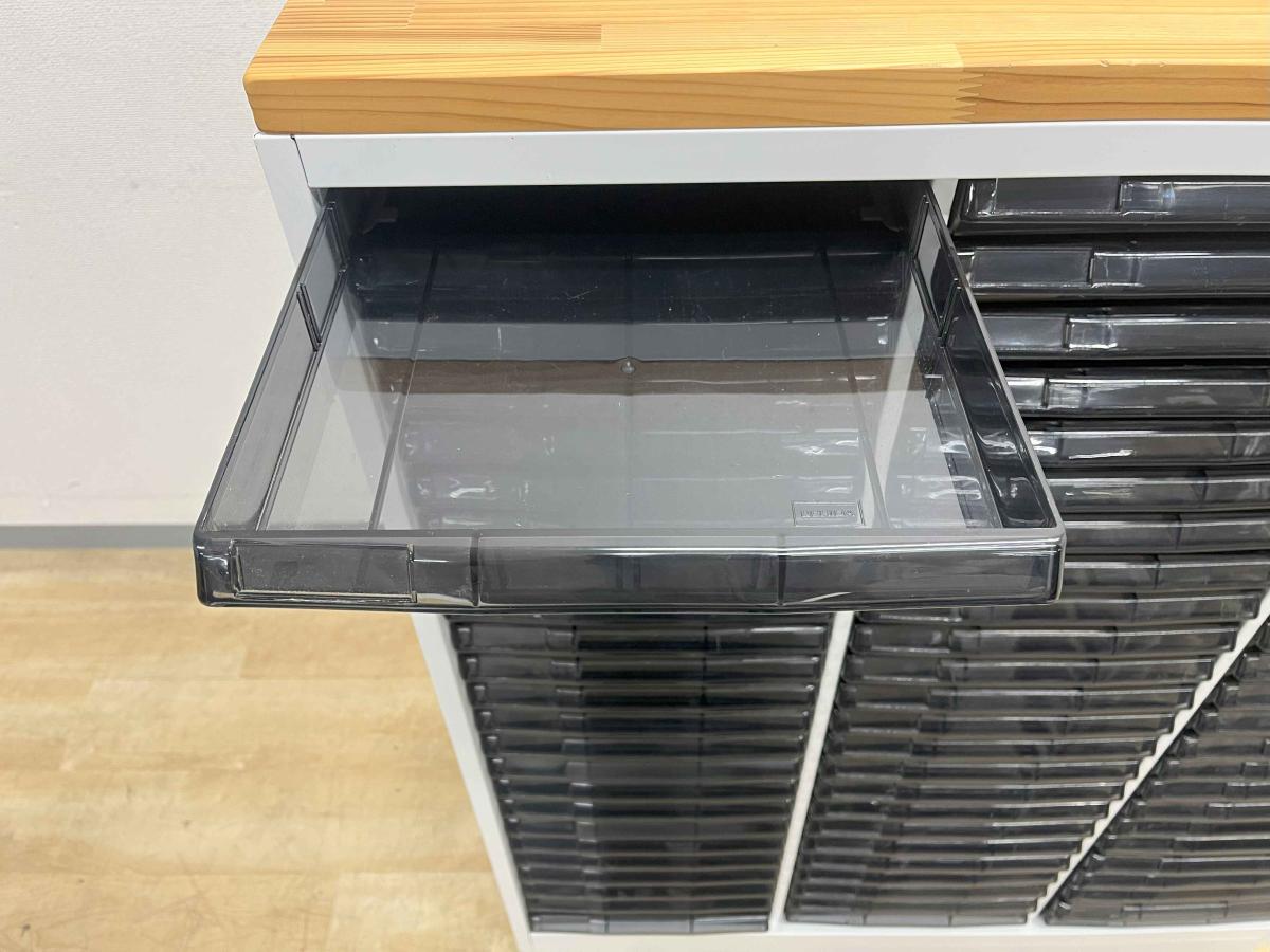 【希少なクリスタルキャビネット!細かい書類整理の仕分けに!】■ウチダ製 クリスタルトレー 浅型24×3列 ■本体ホワイト×ナチュラル天板- 岐阜店