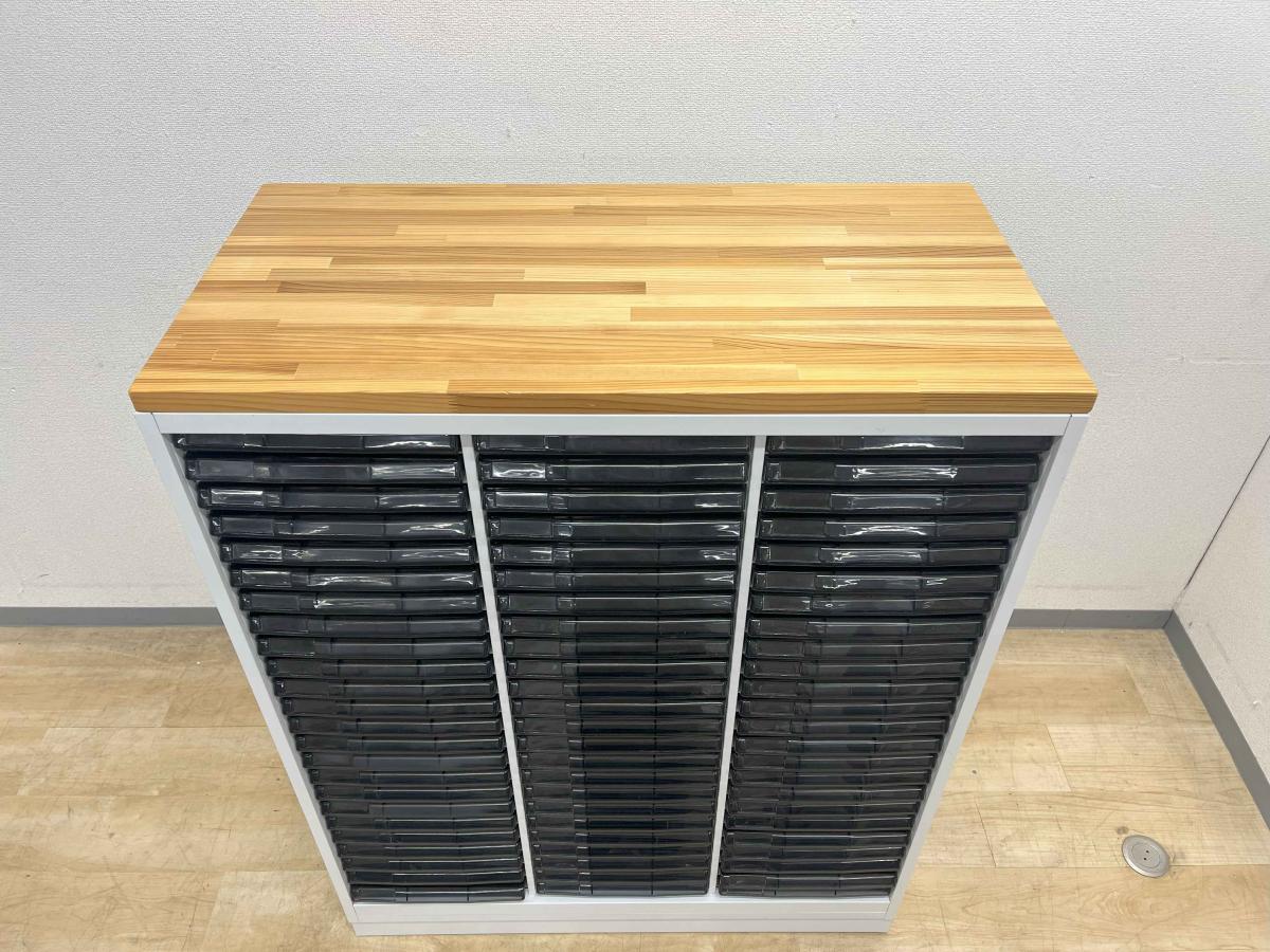 【希少なクリスタルキャビネット!細かい書類整理の仕分けに!】■ウチダ製 クリスタルトレー 浅型24×3列 ■本体ホワイト×ナチュラル天板- 在庫数