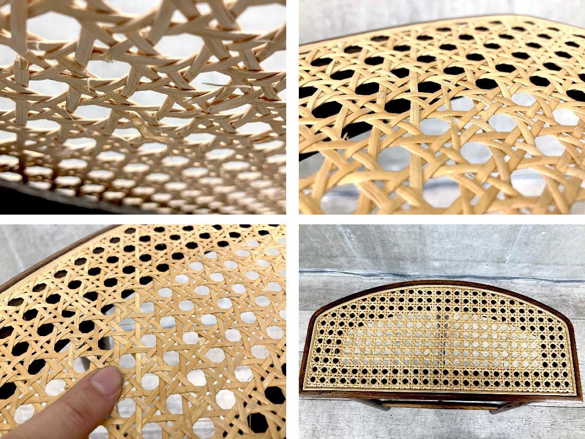 美しく見とれてしまう座面は、細かく編み込んだ籐で張られていて、細部にまでこだわりの詰まった仕様になっています。