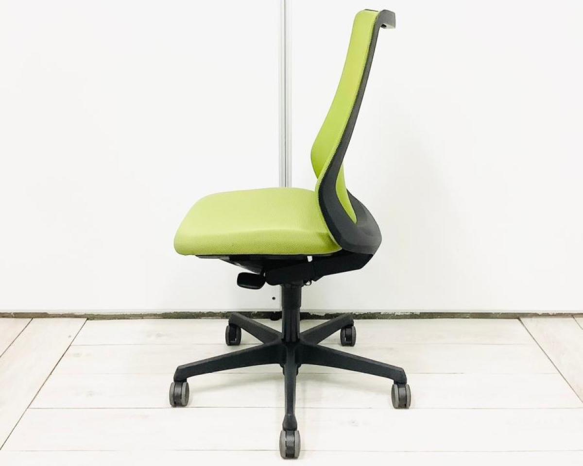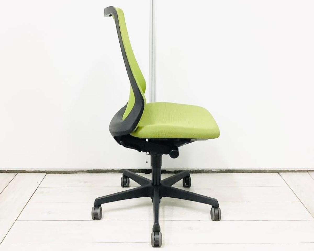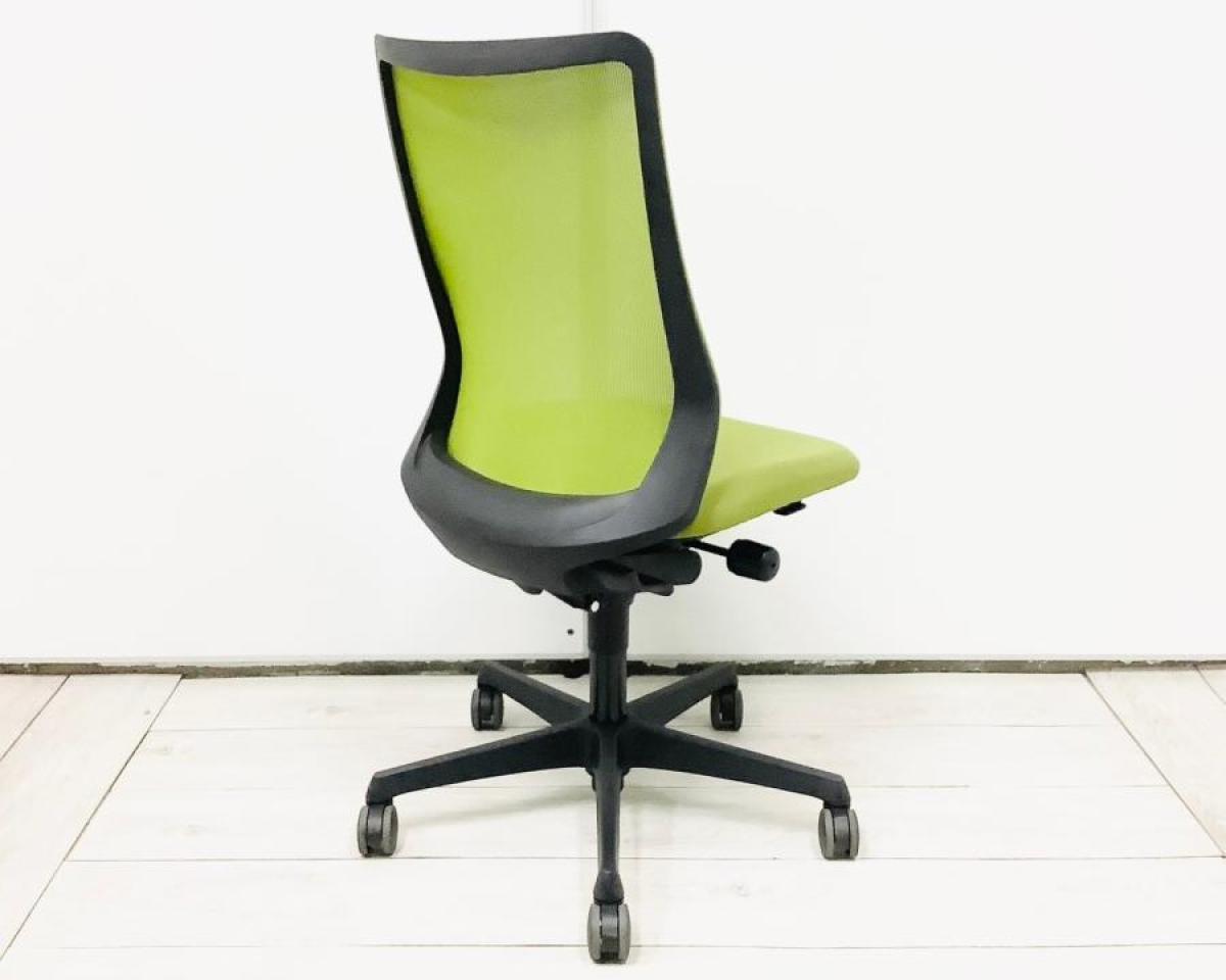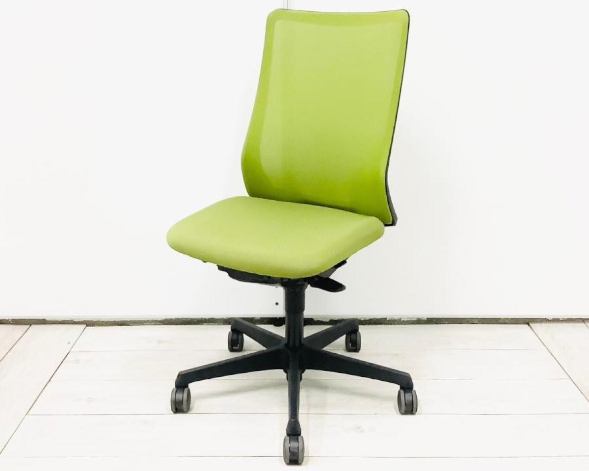 【腰まわりをしっかりホールド!長時間作業も快適フィット!】■オカムラ(okamura)製 フルーエントチェア ハイバック肘無し ■背面メッシュ ■グリーン×ブラックフレーム【IB】