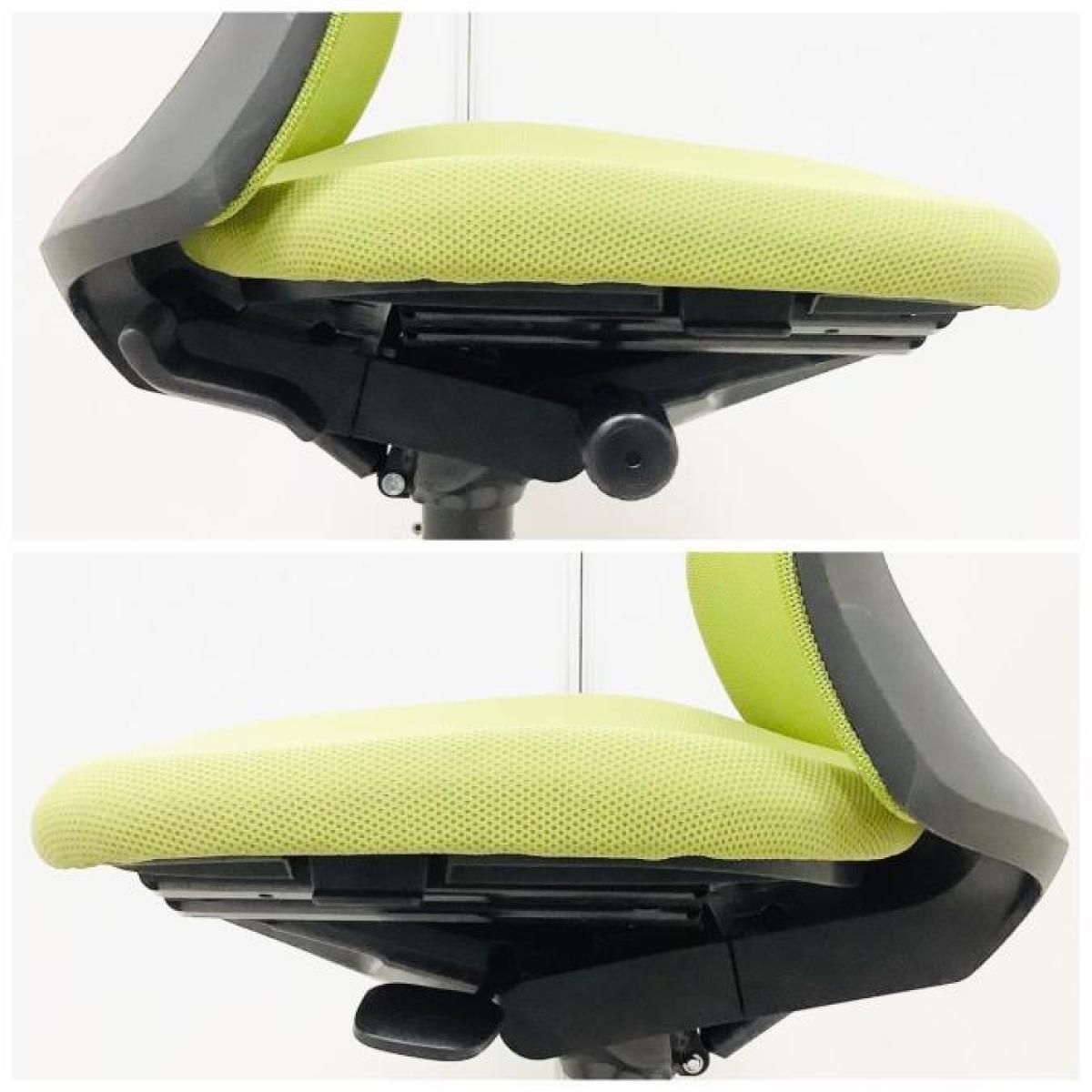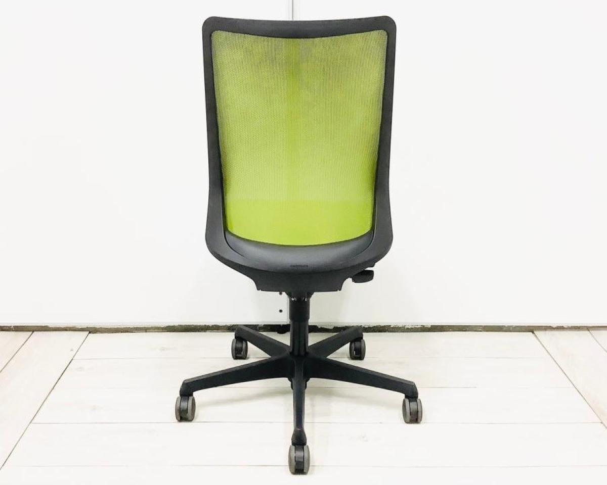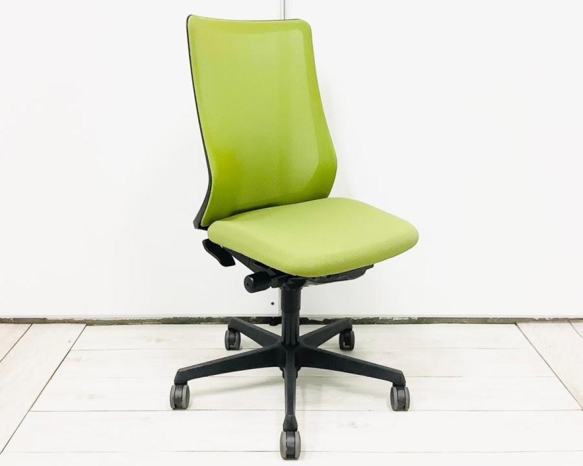 【腰まわりをしっかりホールド!長時間作業も快適フィット!】■オカムラ(okamura)製 フルーエントチェア ハイバック肘無し ■背面メッシュ ■グリーン×ブラックフレーム【T9】