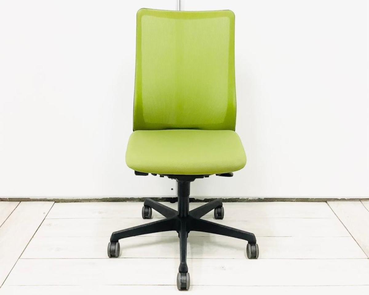 【腰まわりをしっかりホールド!長時間作業も快適フィット!】■オカムラ(okamura)製 フルーエントチェア ハイバック肘無し ■背面メッシュ ■グリーン×ブラックフレーム【T10】