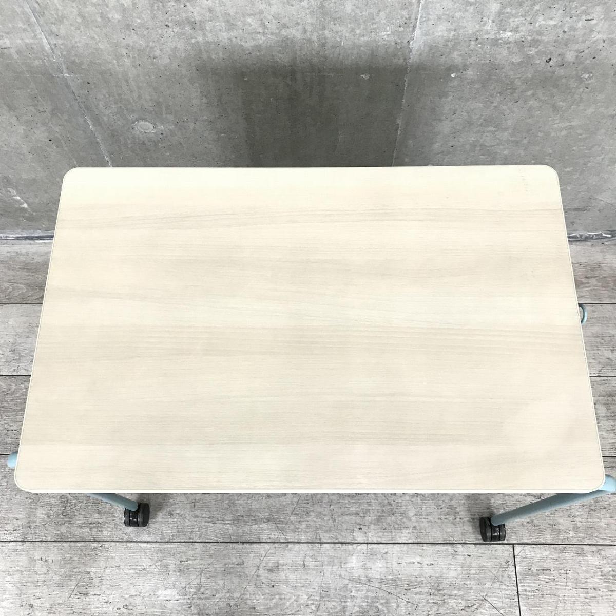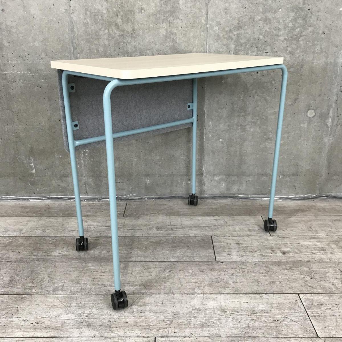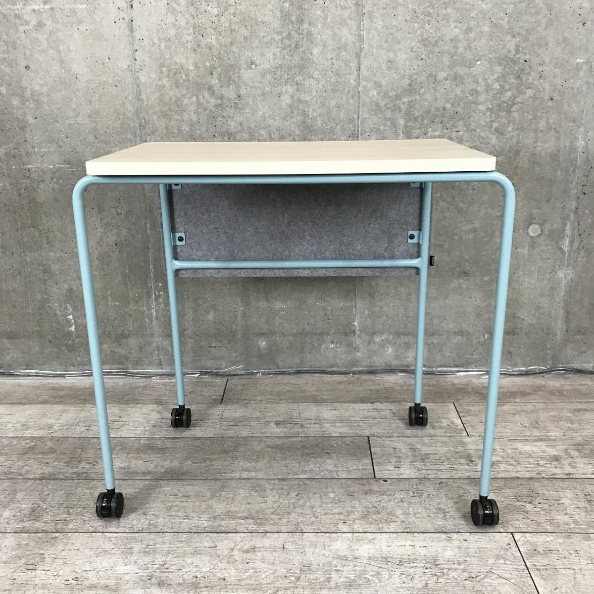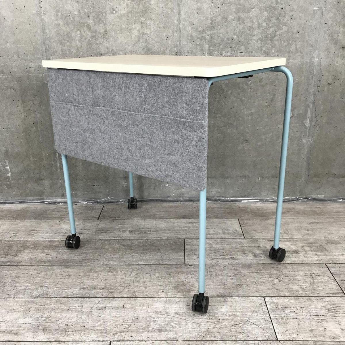 【キャスター付でフレキシブルに使えます!4台まで積み重ねも可能!】■4台セット販売 ■オカムラ(okamura)製 スプリントテーブル ■木目ナチュラル×ブルー脚 ■幕板付 ■キャスター付【弊社使用欄:A01009341】- 在庫数
