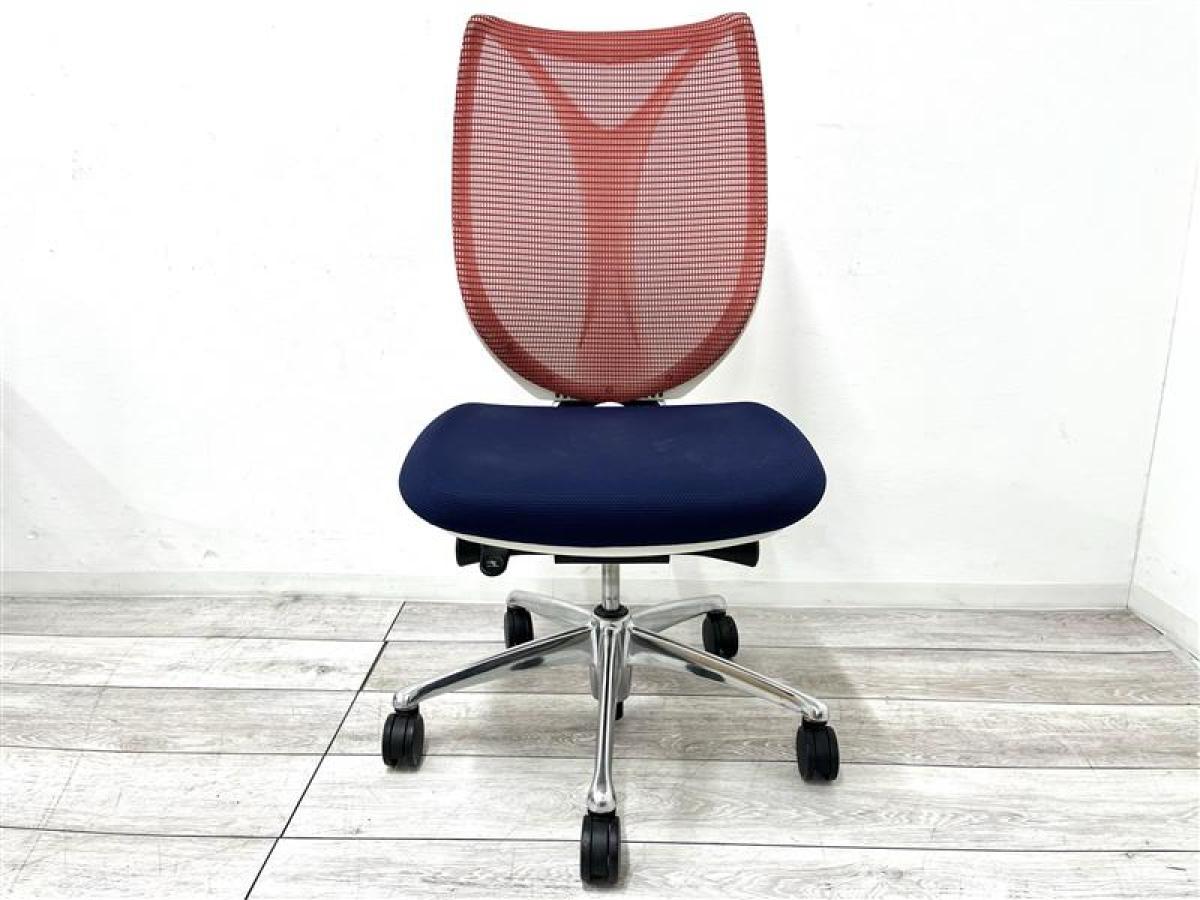【人間工学から生まれた最先端のワーキングチェア!】■オカムラ サブリナチェア 肘掛け無 背:レッド / 座:ダークブルー ■流れるような美しいフォルム!姿勢に心地よくフィット!【K10】
