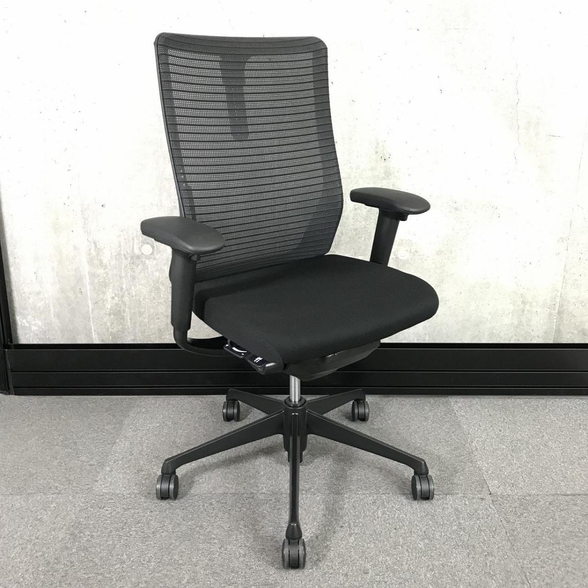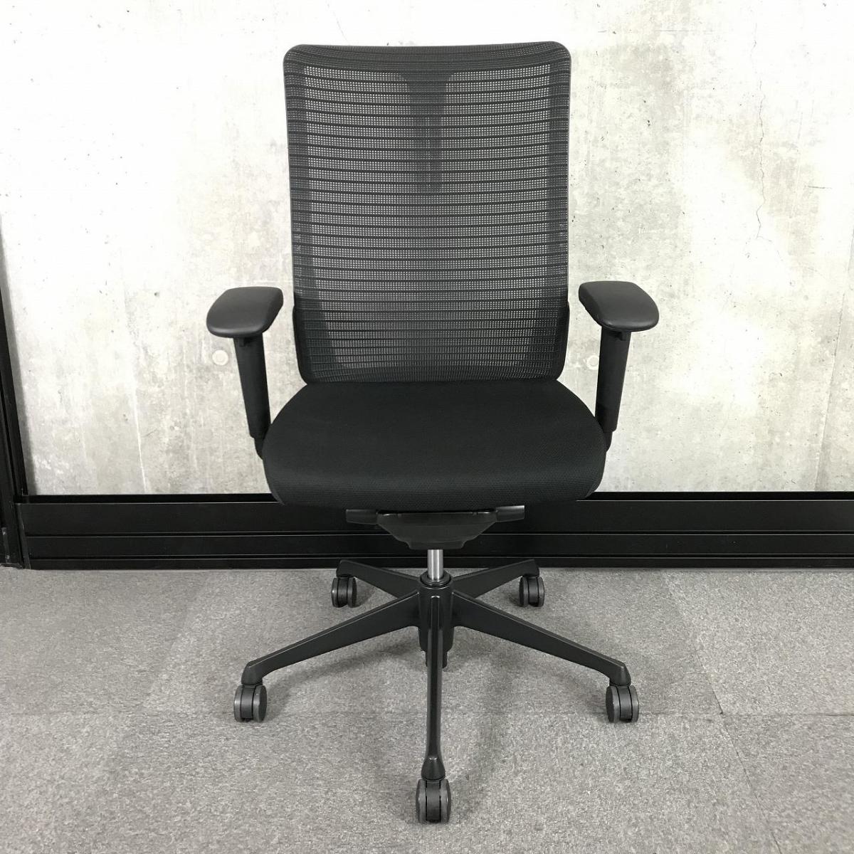 【着座で始まるコーラルものがたり】オカムラ コーラル 肘付 メッシュ ブラック 【固定肘タイプの脚までオールブラック仕様!】〈岐阜・愛知・三重・静岡・福井〉